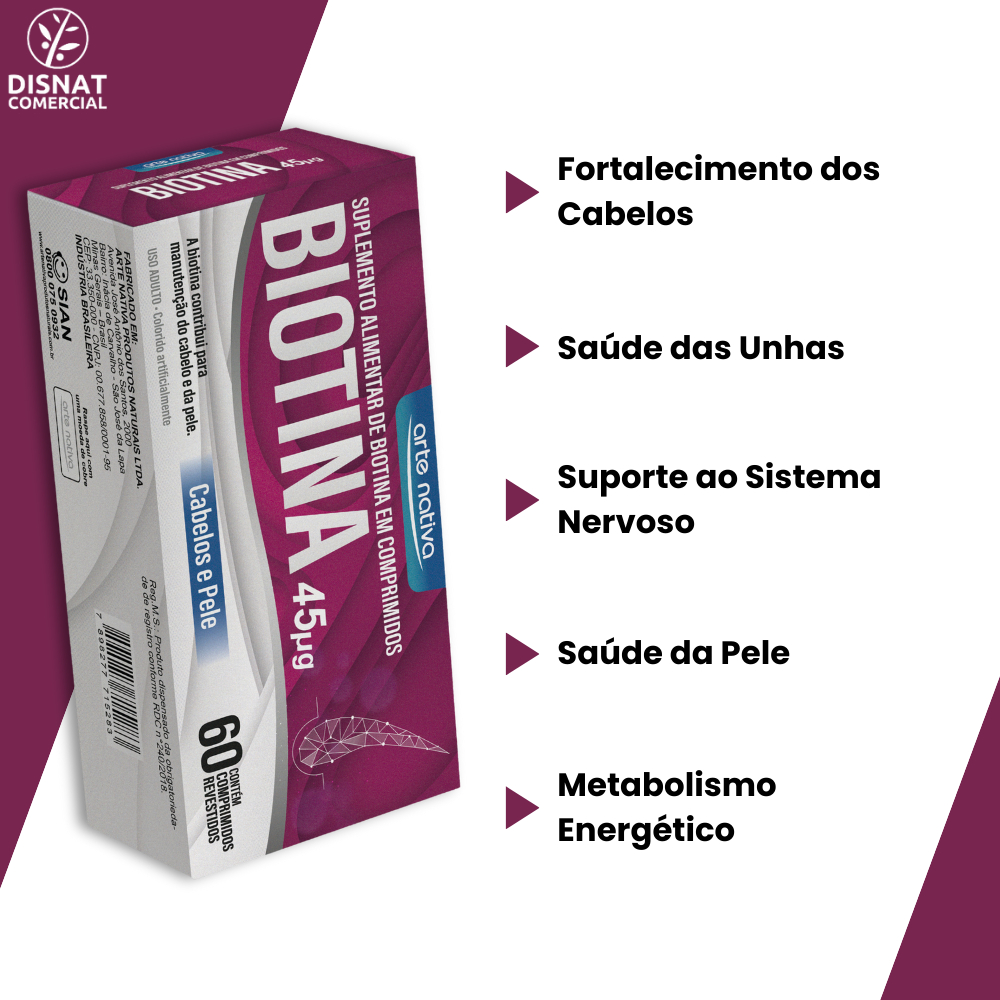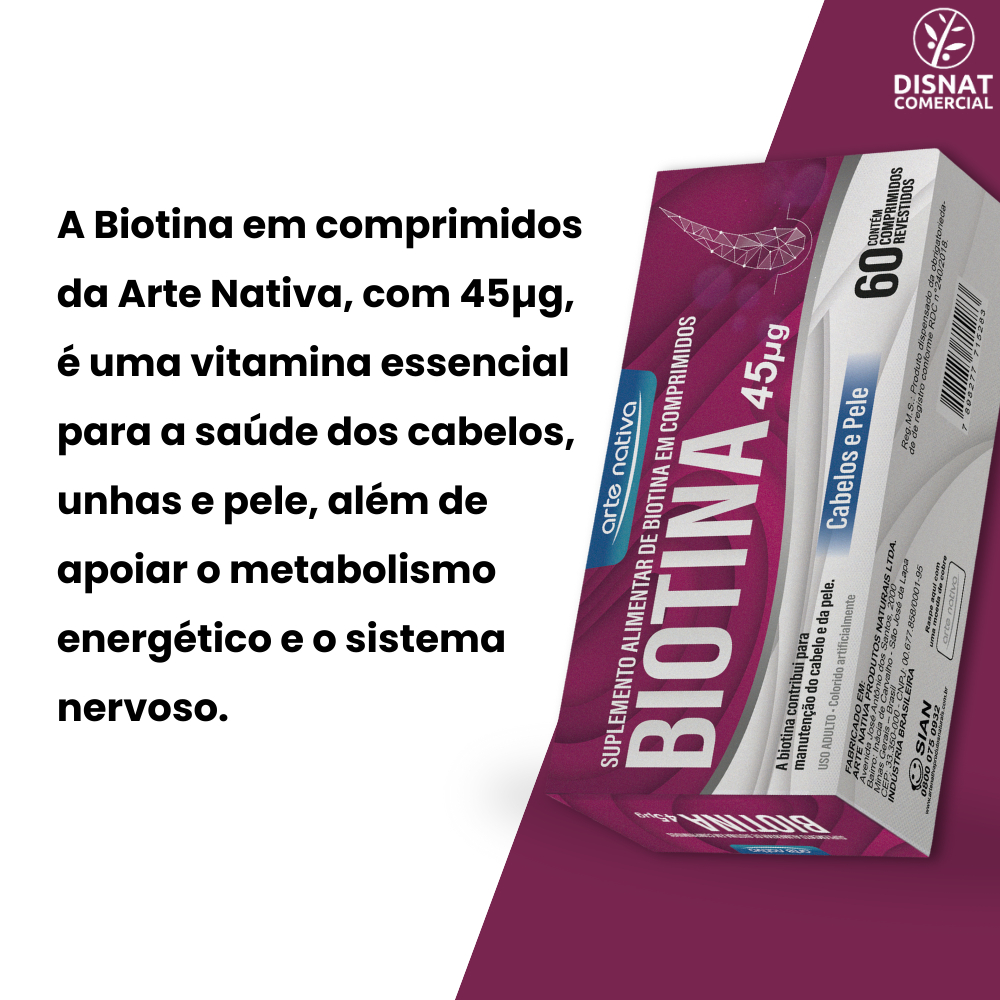 Vitamina Biotina 45µg Cabelos e Unhas 60 Comprimidos - Arte Nativa