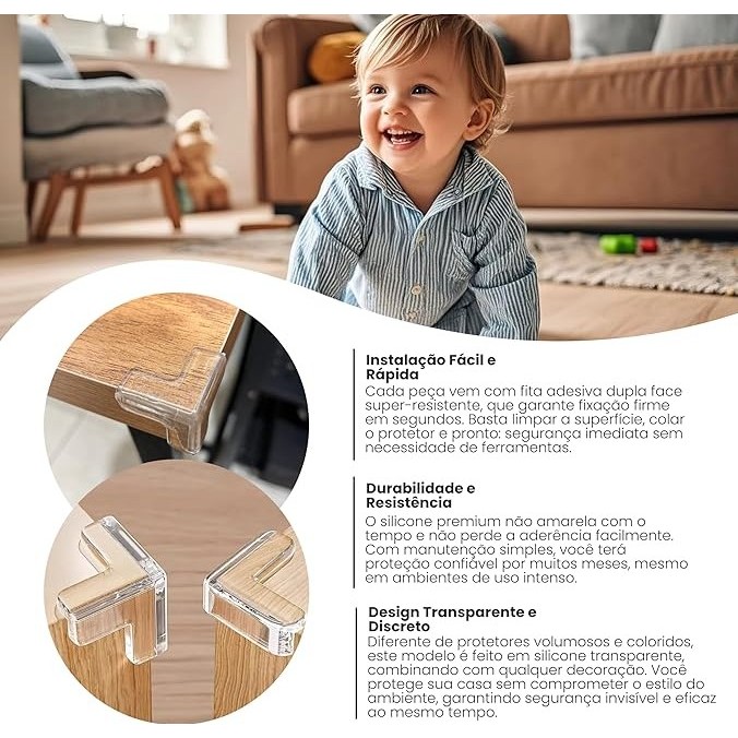 Vittak Kit Protetor Quina Bebê Idoso Mesa Canto Móveis Cantoneira Adesivo Silicone Impacto