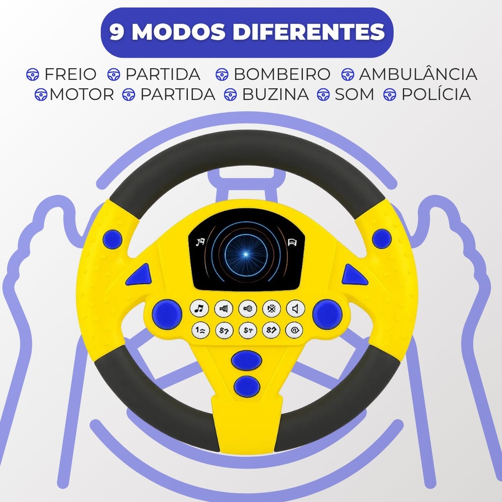 Volante Infantil Carro Brinquedo Interativo Gira 360 Ventosa C/ Som Buzina Educativo Musical Kizumba