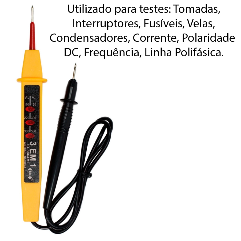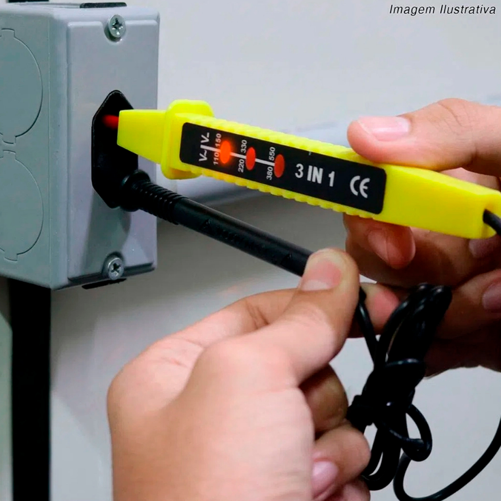 Voltímetro 3 em 1 Teste Energia Tomadas Elétrica 110/220/277/500V 60Hz