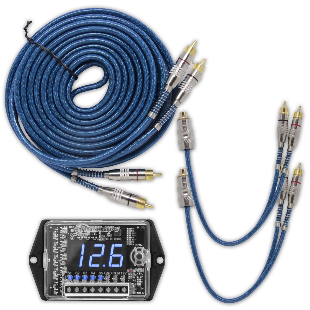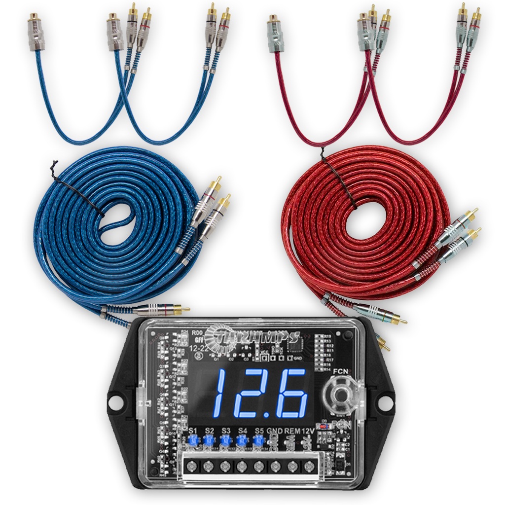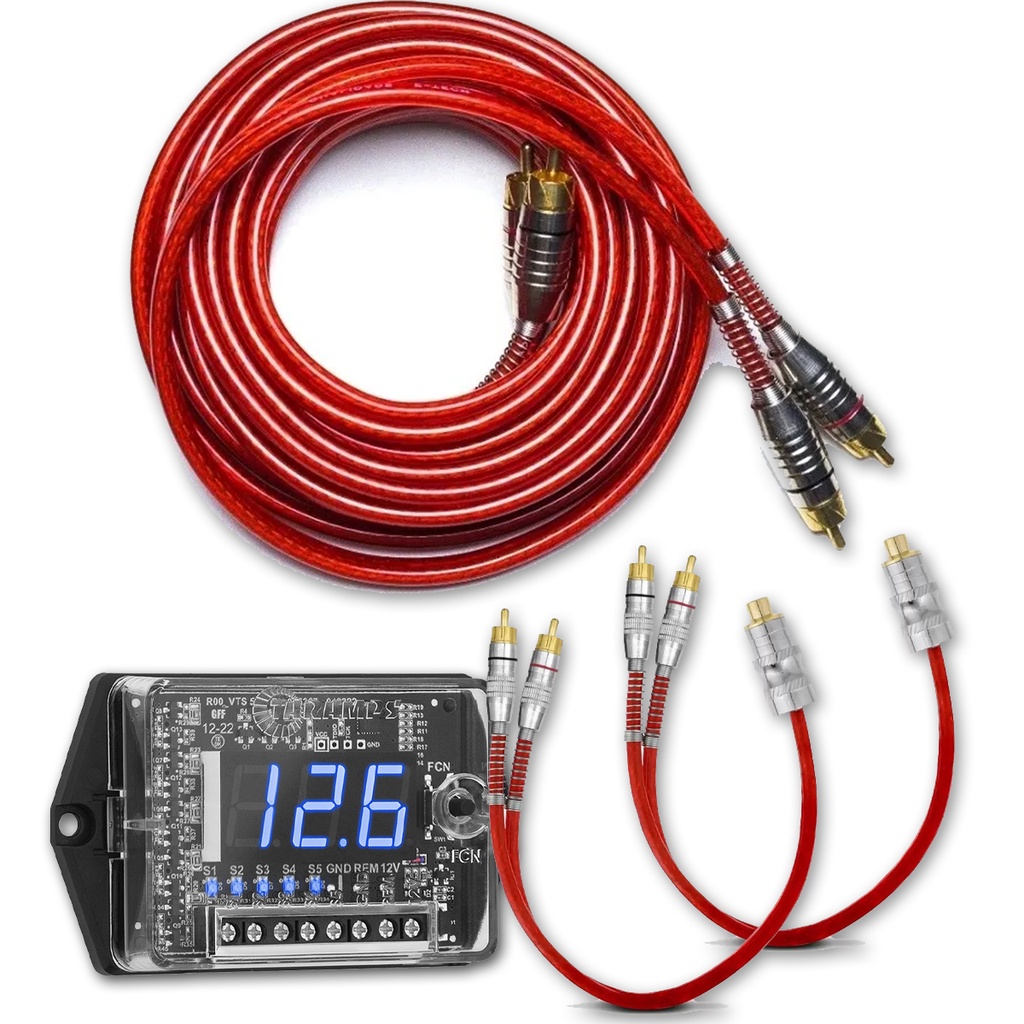 Voltímetro Digital Taramps VTS 5.1+Cabo RCA Automotivo Blindado 5 Metros e 2 Cabos Y 1Fêmea 2Machos