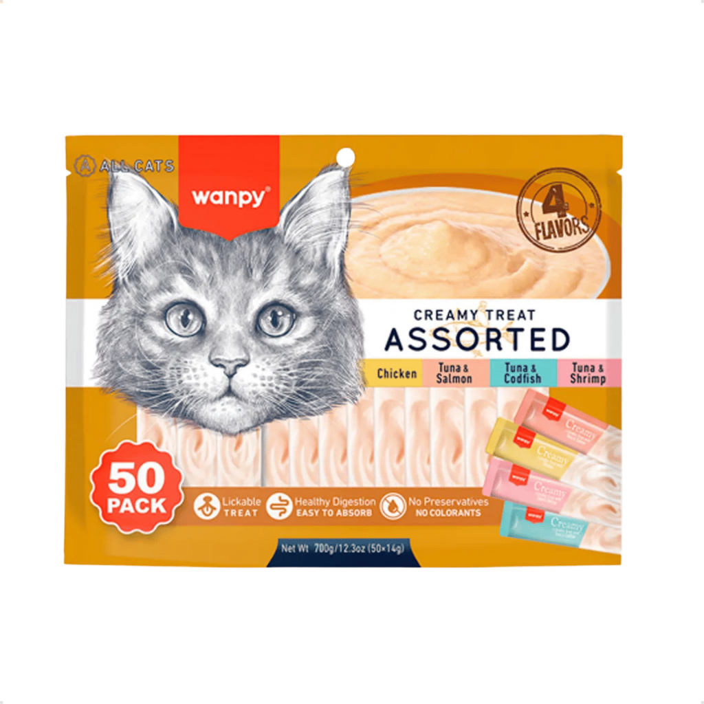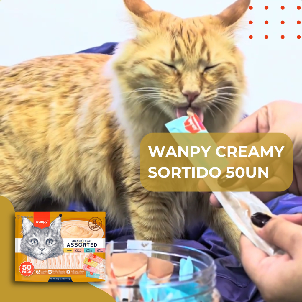 Wanpy Creamy Petisco Snack Cremoso para Gatos Treat Sabores Sortido 50 Sachês
