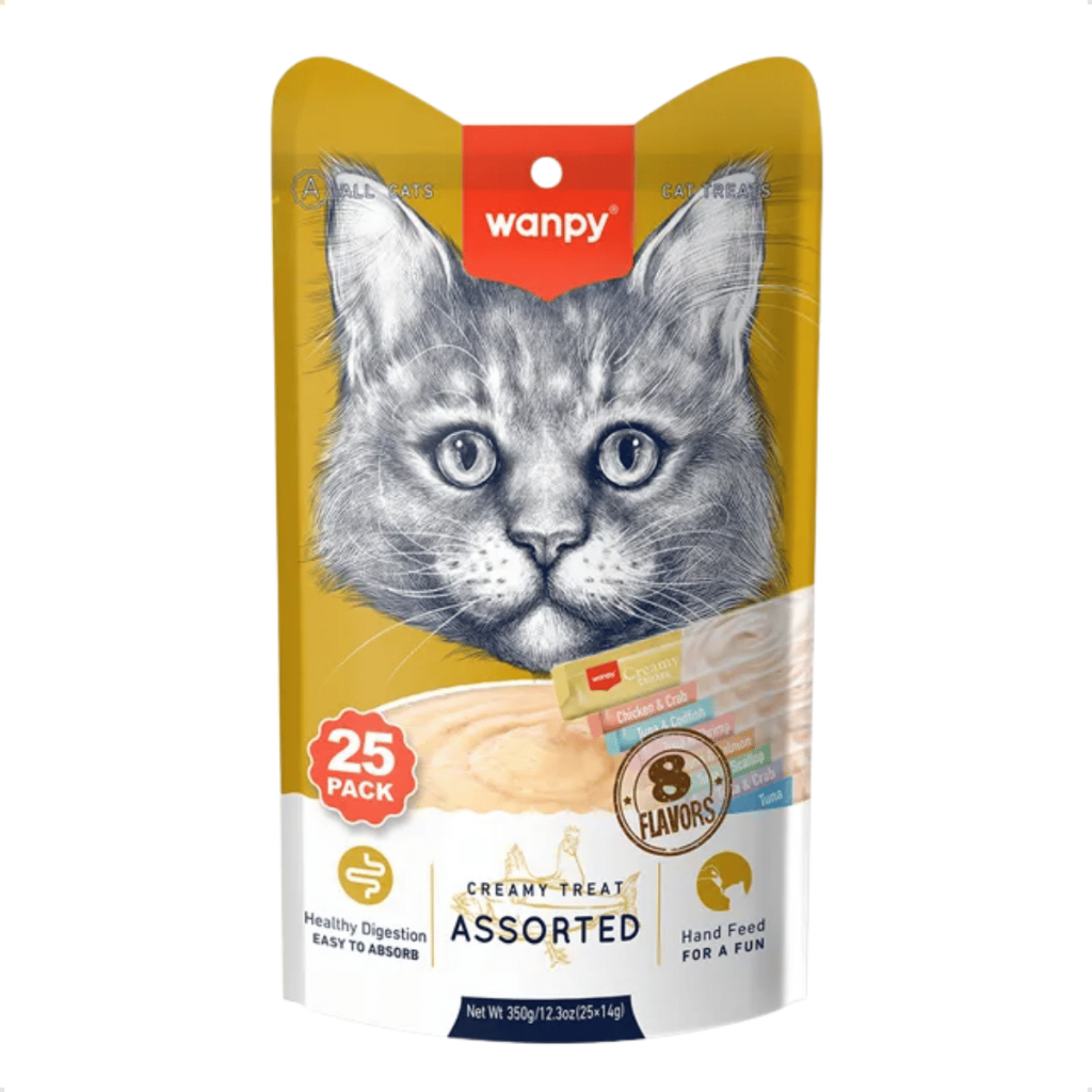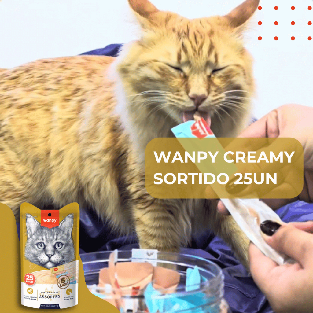 Wanpy Petiscos Gatos Snack Cremoso Creamy Treat Sabores Sortido 25 Sachês