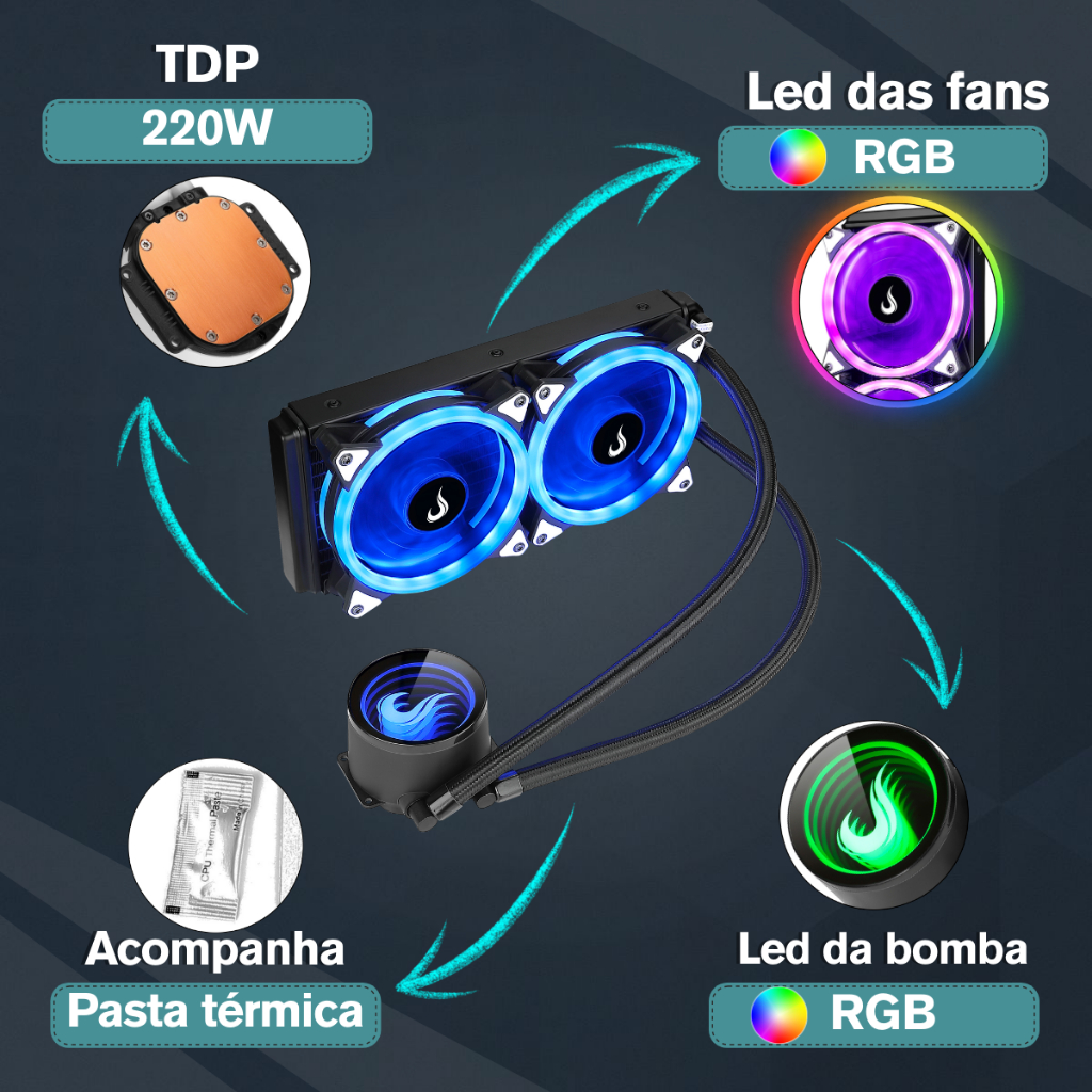 Water Cooler 240mm | Rise Mode | Black Rgb | Intel e Amd | Preto