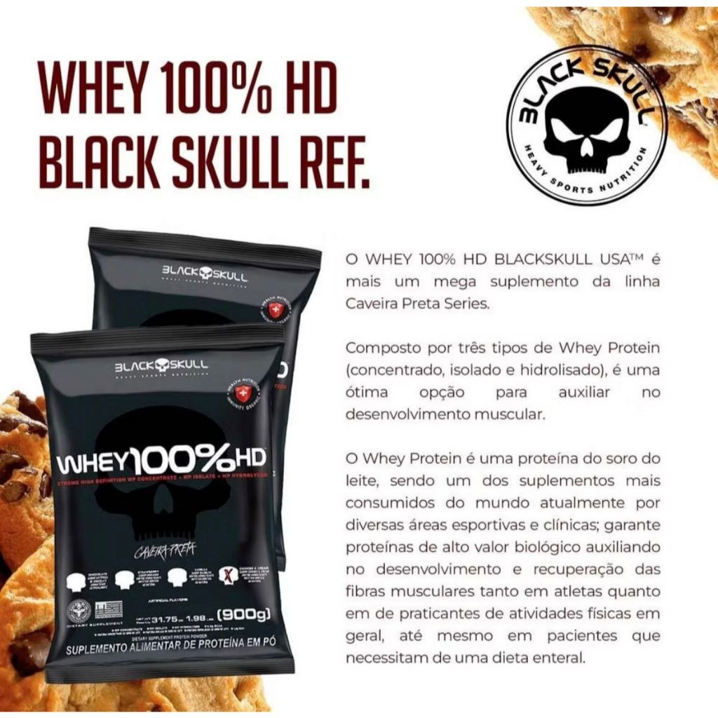 Whey 100% HD Whey Protein 900g Sabores - Black Skull