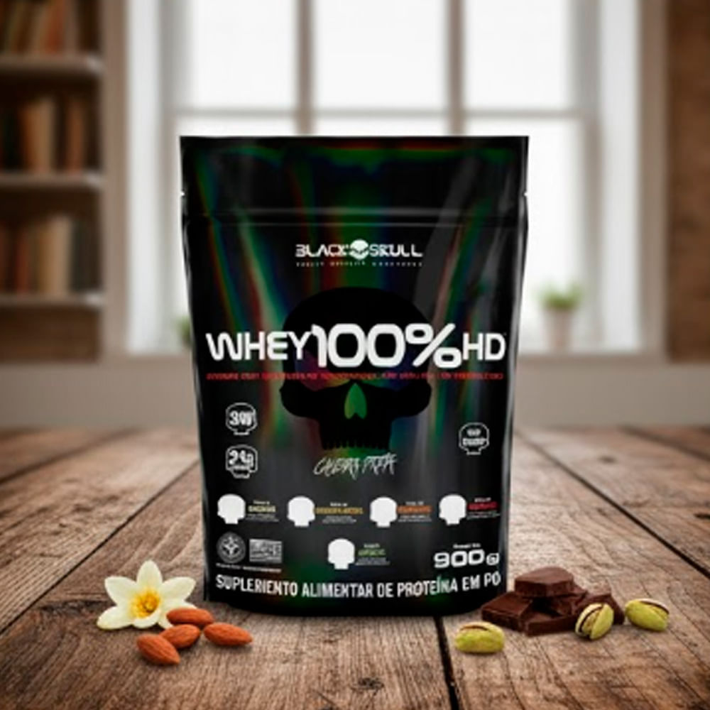 Whey Black Skull 100%HD Caveira Preta Refil Sabor Chocolate 900g