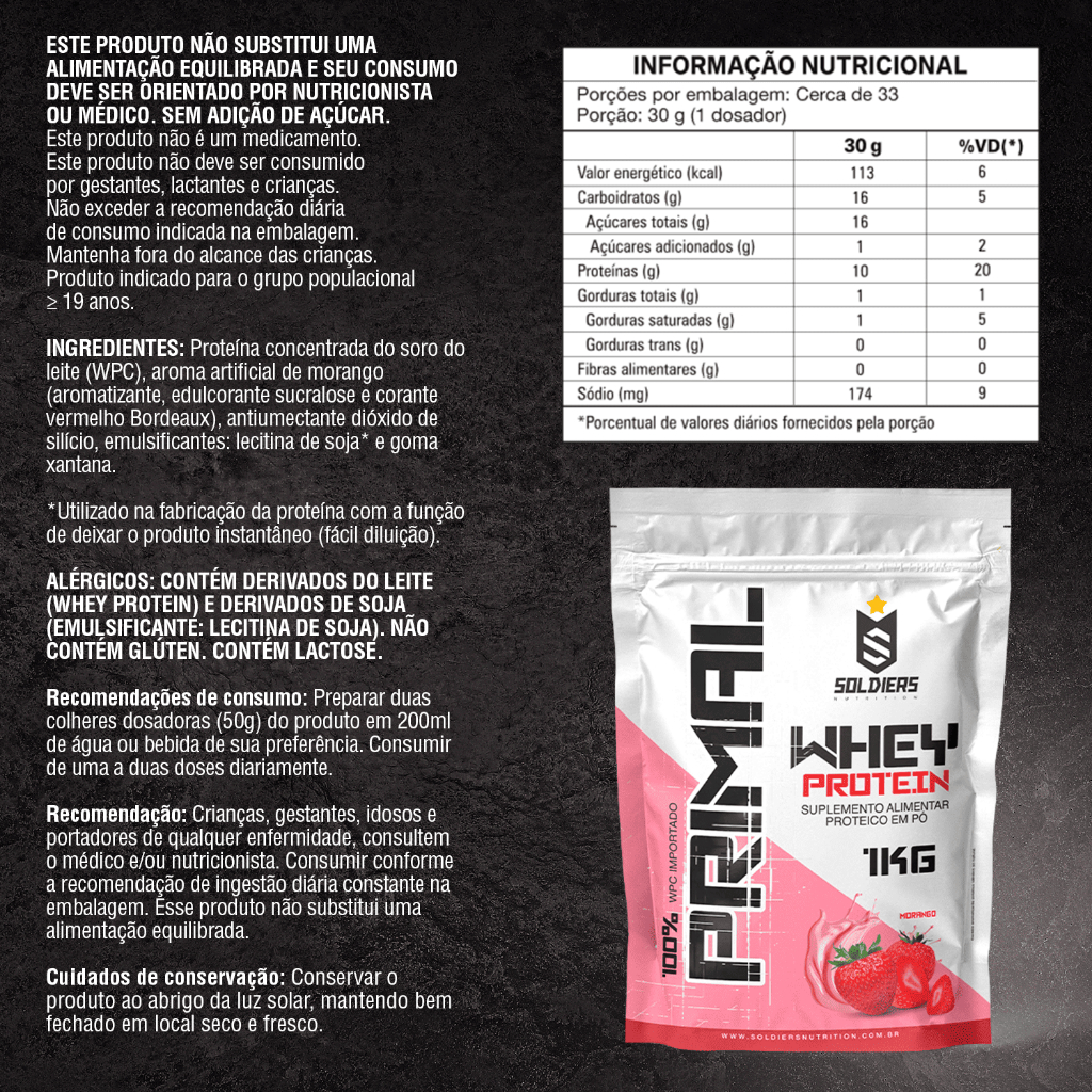 Whey Protein Primal 1kg Importado Soldiers Nutrition Suplemento Proteína Muscular