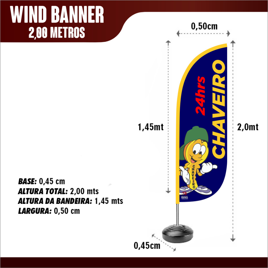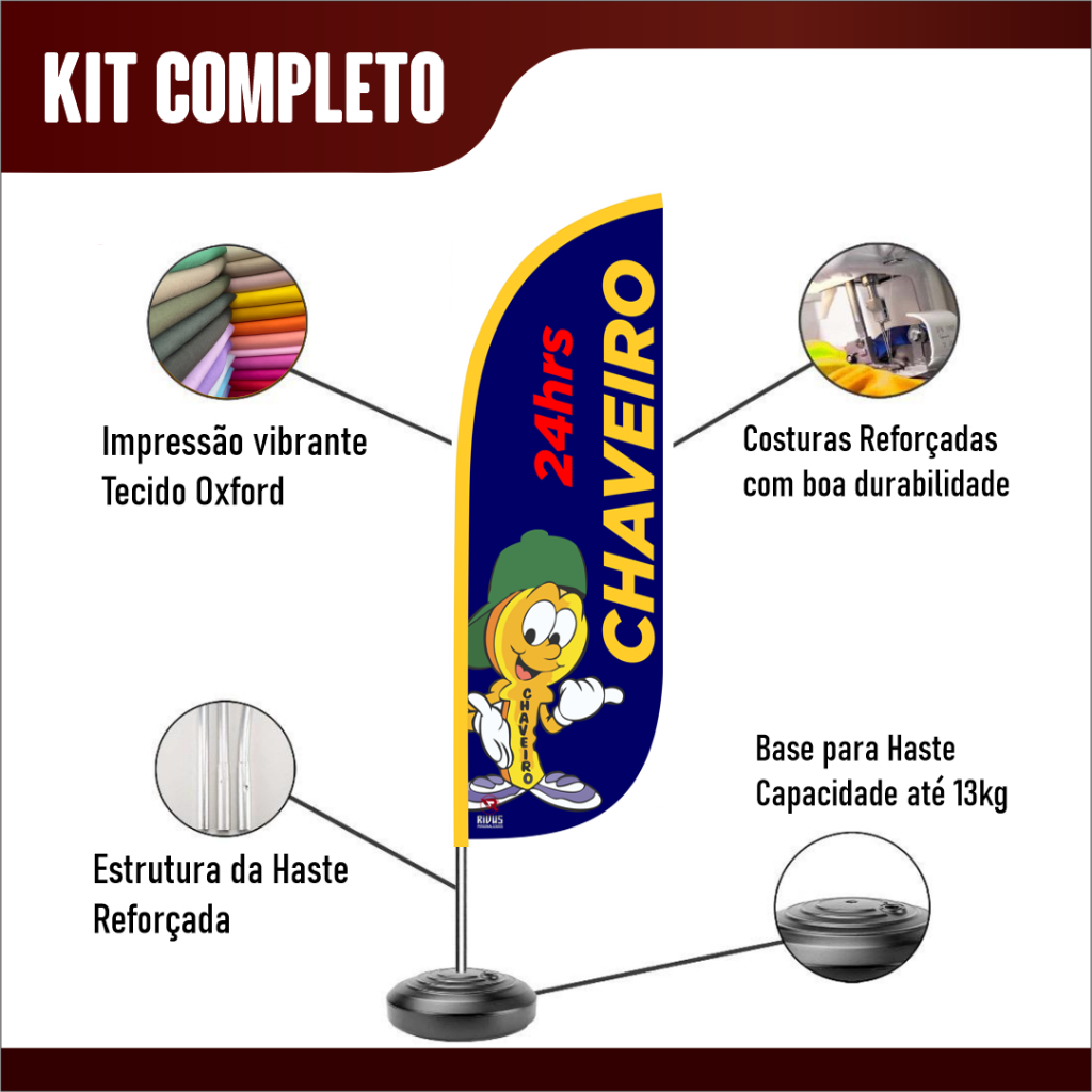Wind Banner CHAVEIRO Bandeira Dupla Face para Chaveiro com Kit Completo: bandeira, haste e base