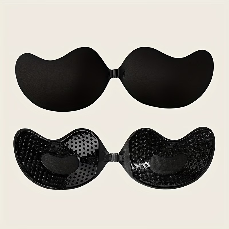 Wing Bra Sillicone Push Up Em Bege \ Preto-Fechamento Frontal Formato De Manga Com Roupa Íntima Invisível