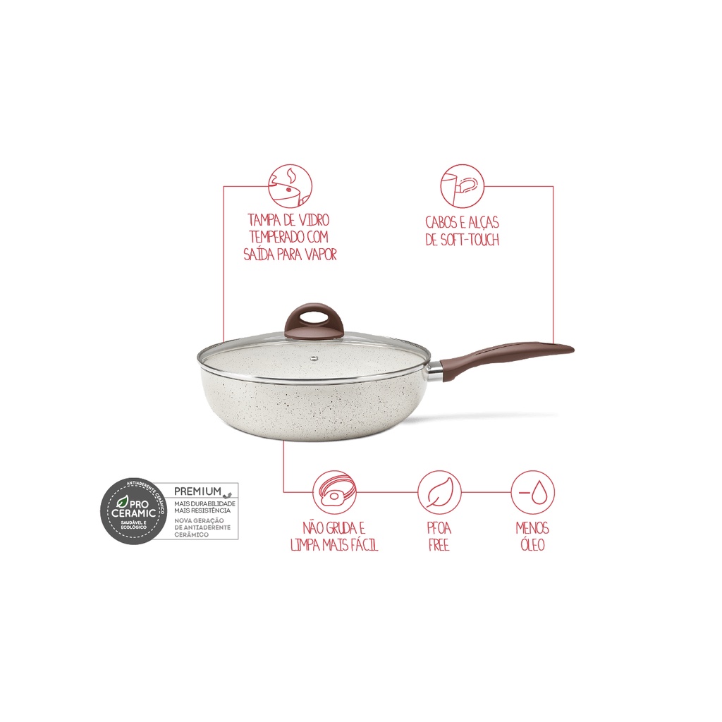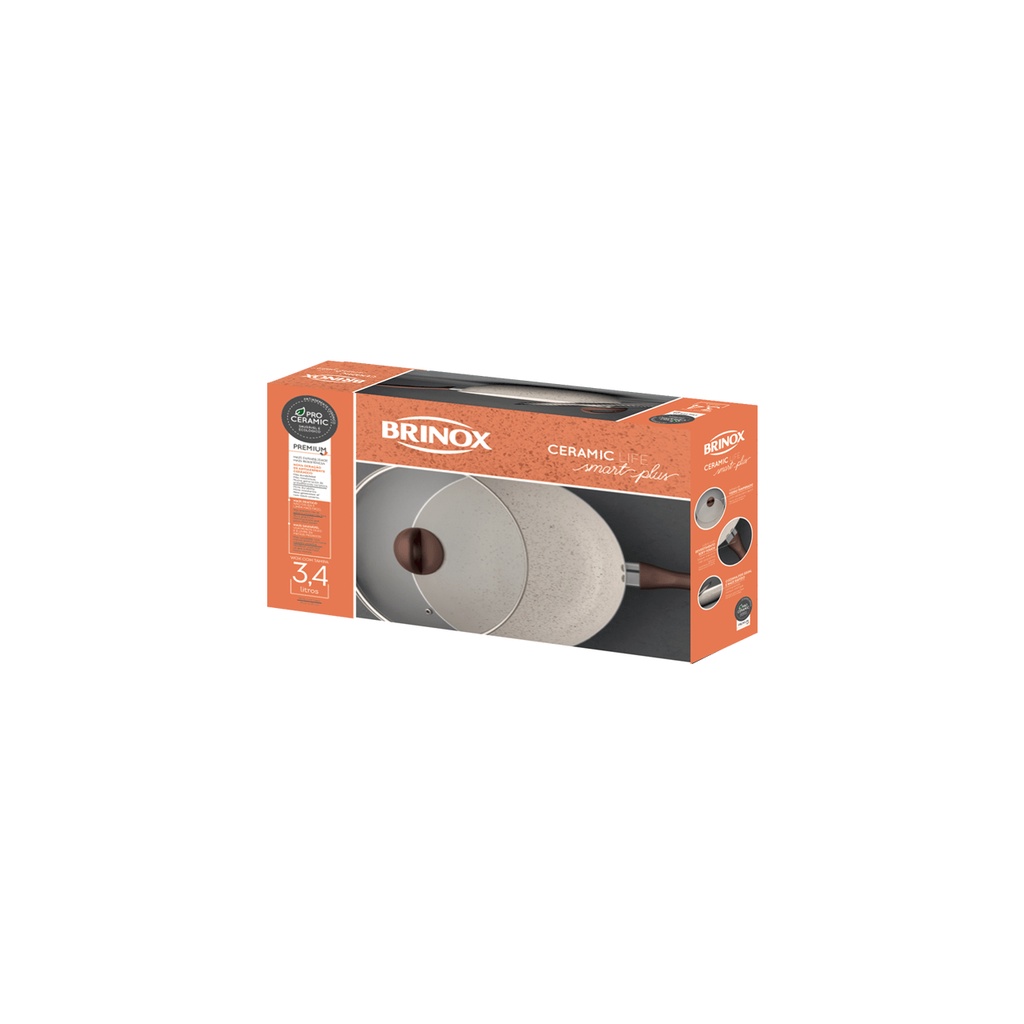 Wok com Tampa Brinox Ceramic Life - Smart Plus 3,4L Vanilla
