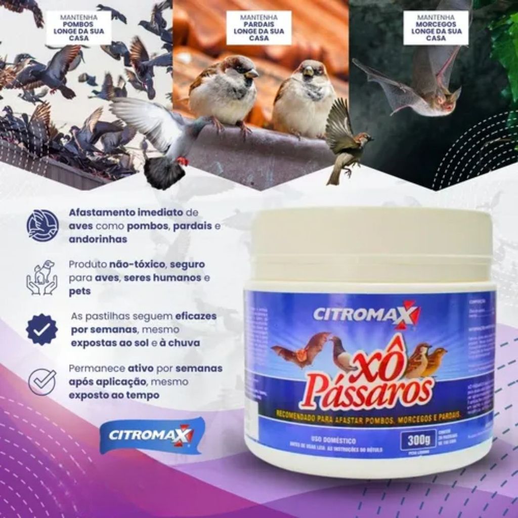 Xô Pássaros Pastilhas 300g Para Pombos, Pássaros e Morcegos
