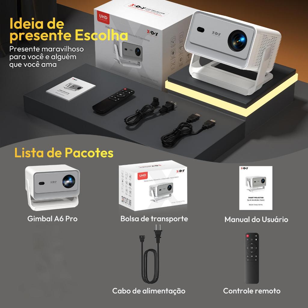 XGODY Gimbal A6 Pro Projetor Foco Automático 1080P 4K Android 11.0 Ultra HD Home 700 ANSI