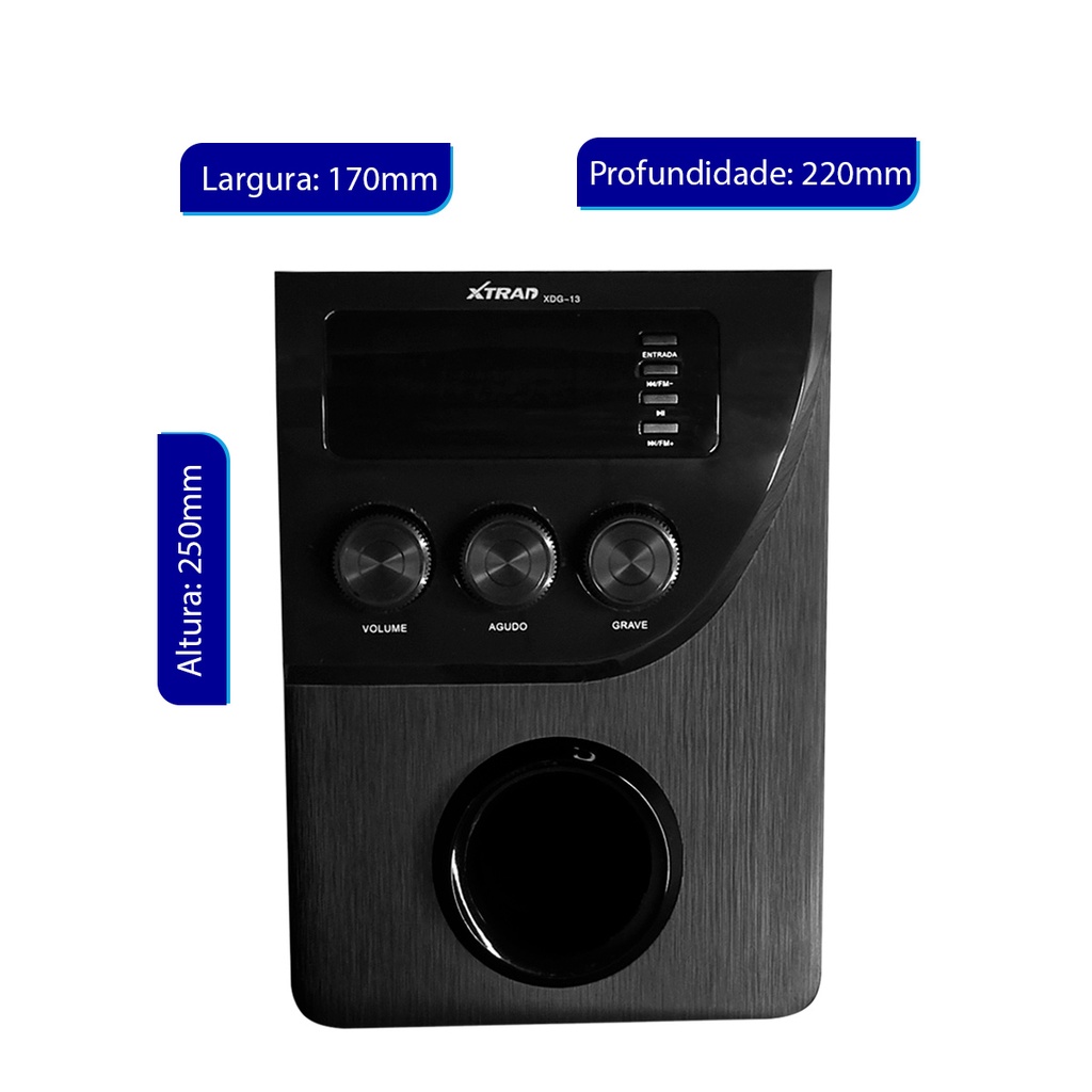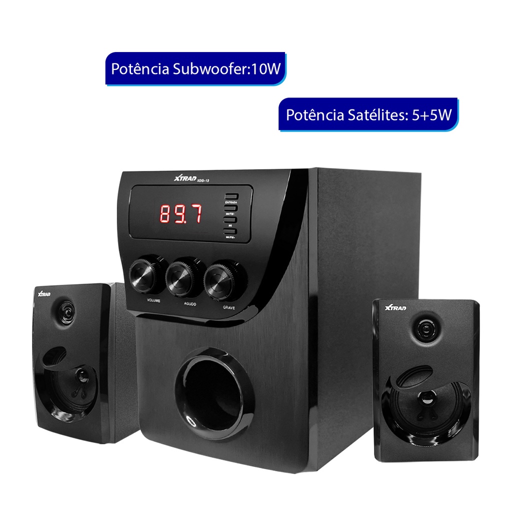 Xtrad Caixa de Som PC Micro System 2.1 Bluetooth para TV Computador Subwoofer 20w rms Mp3 Fm Bivolt XDG-13