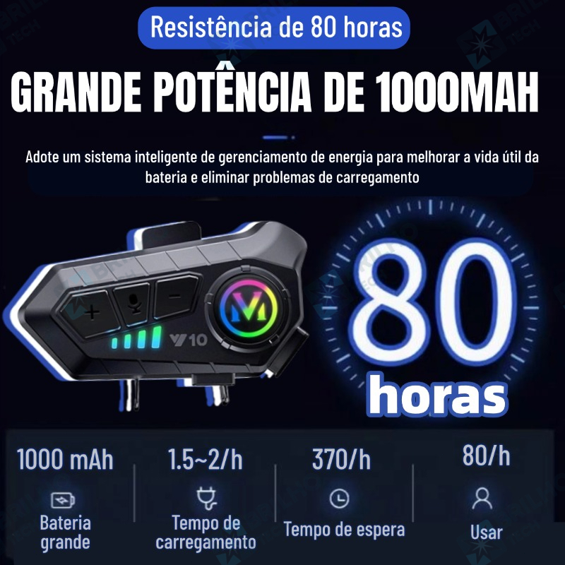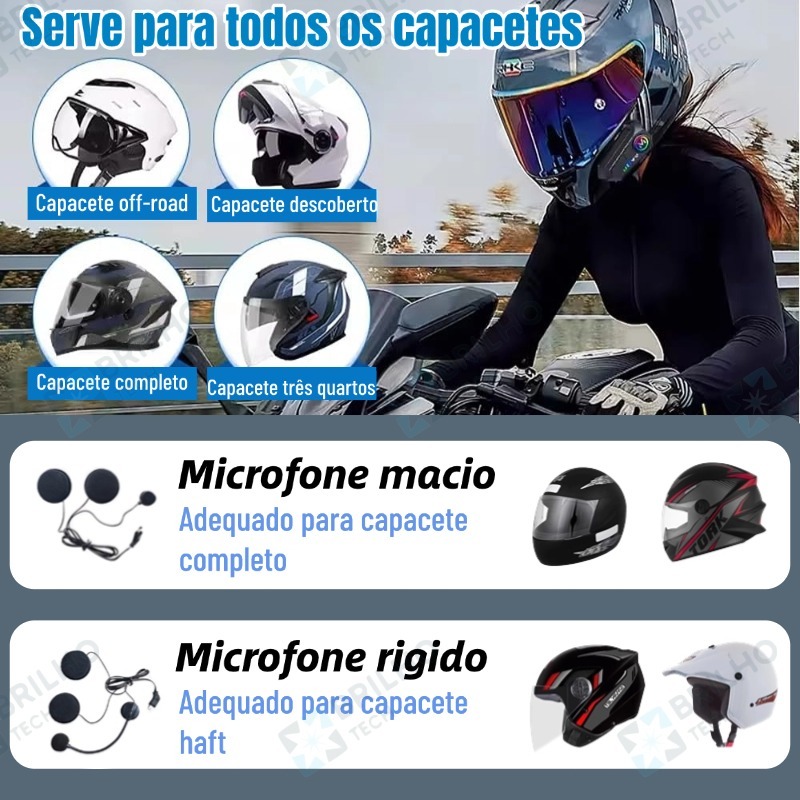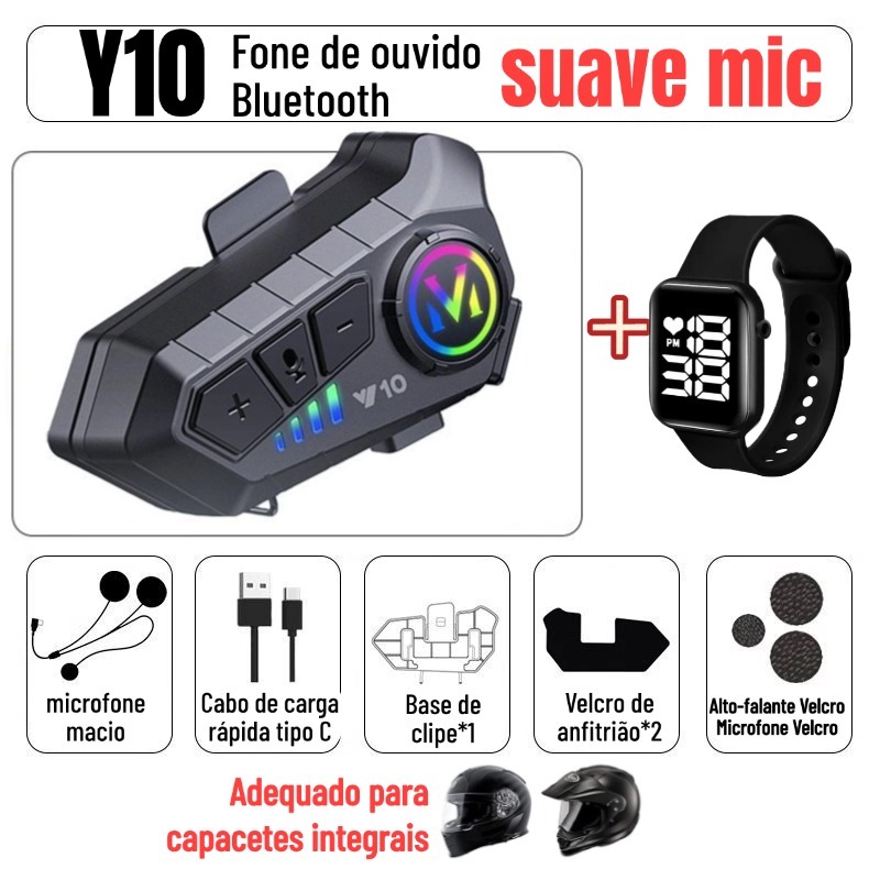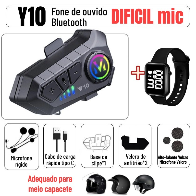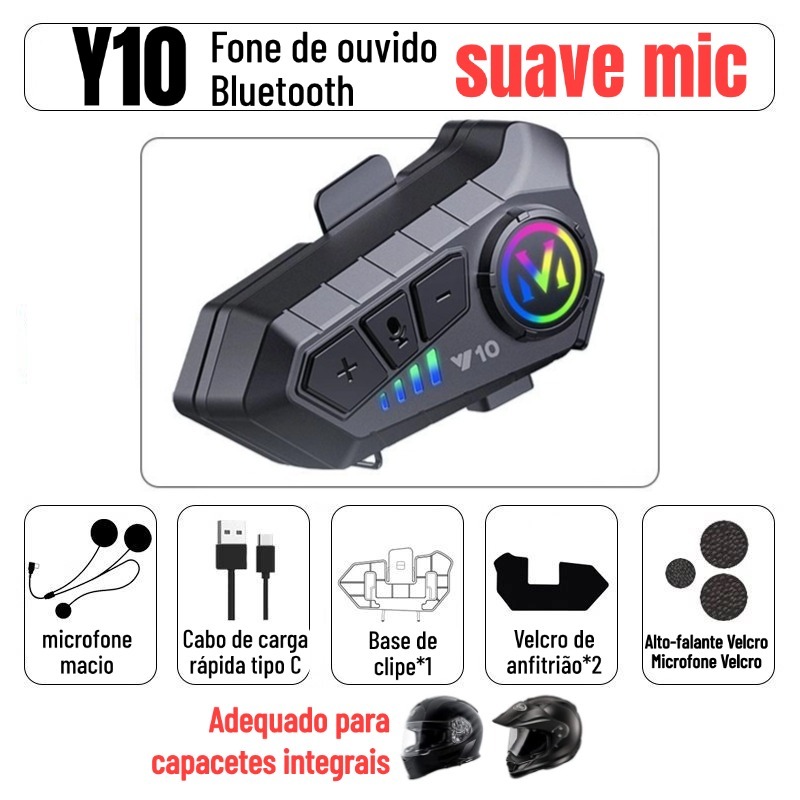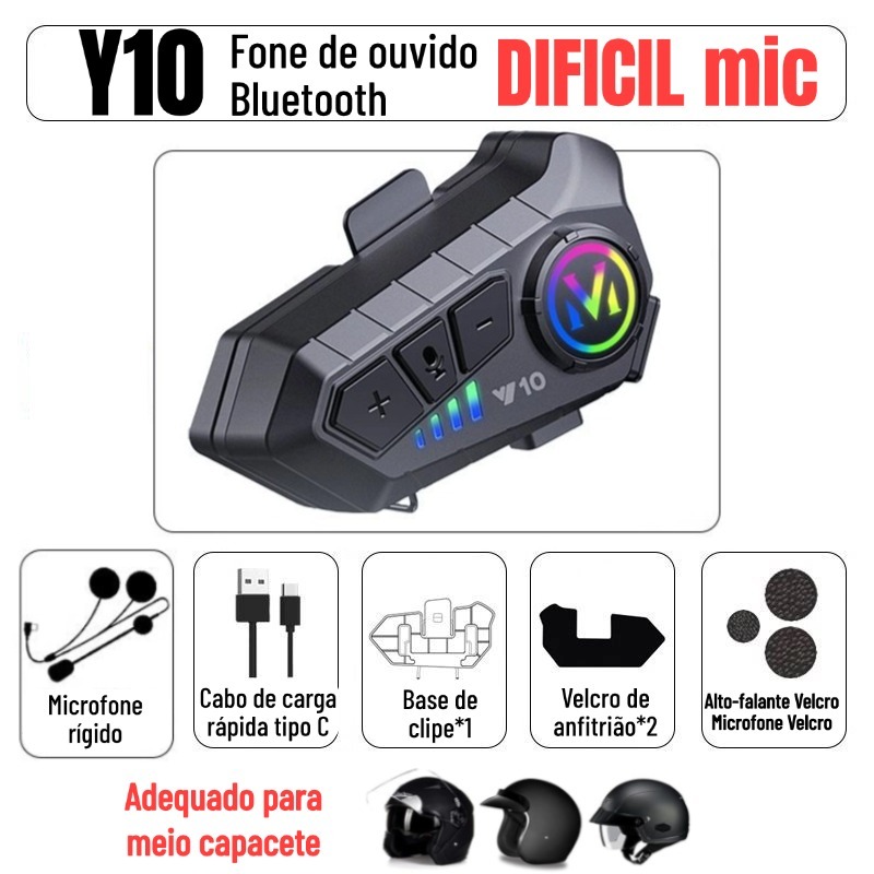 Y10 Motocicleta Sem Fio Bluetooth 5.3 Fone de Ouvido Capacete Kit de Chamadas Mãos Livres À Prova D'Água