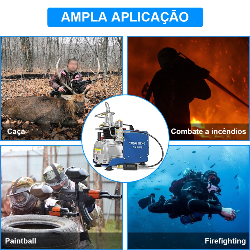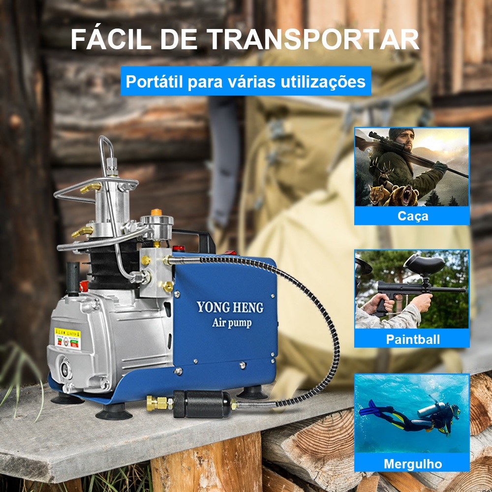 YONGHENG 300bar PCP Compressor de ar Auto-Stop Paintball Compressor de alta pressão 220V