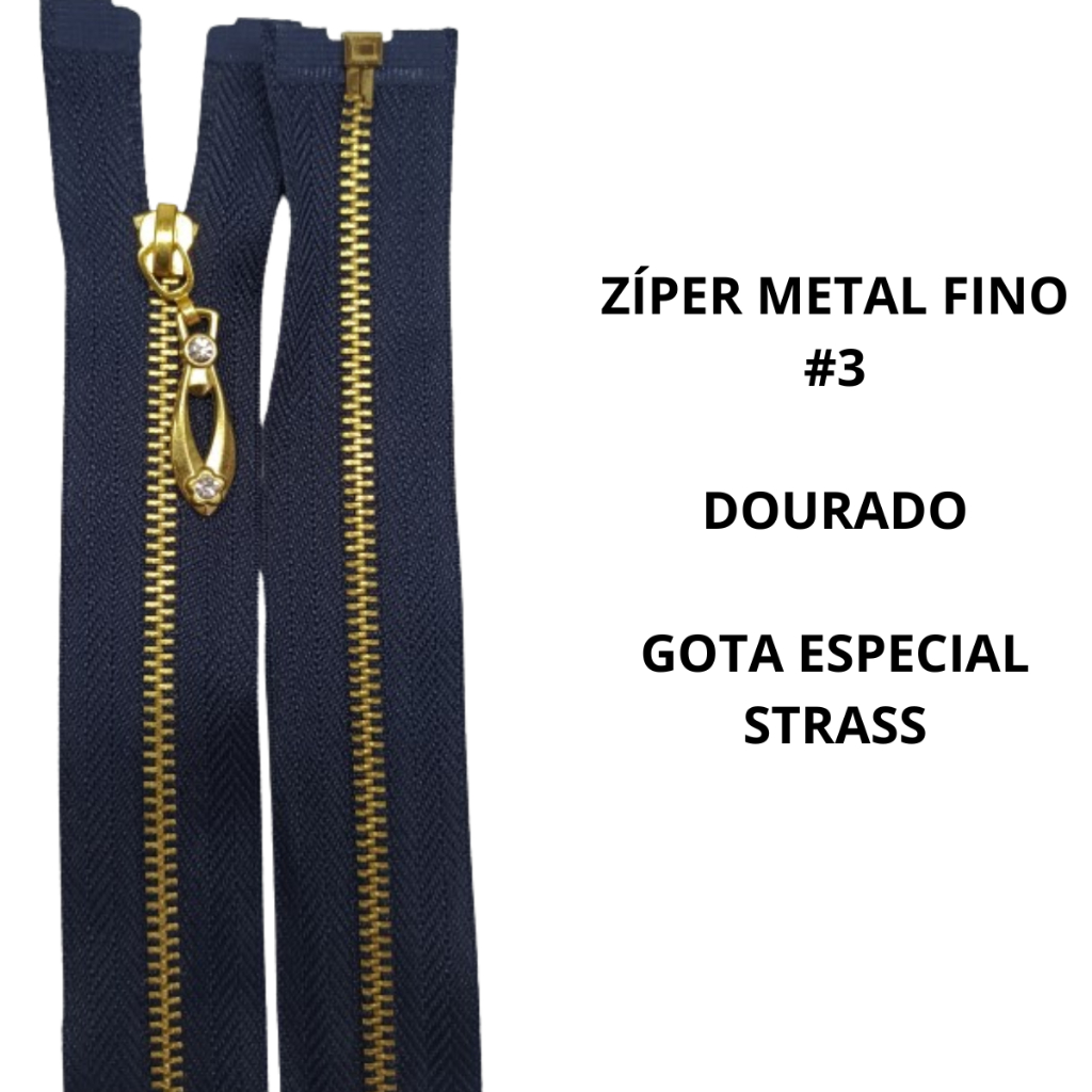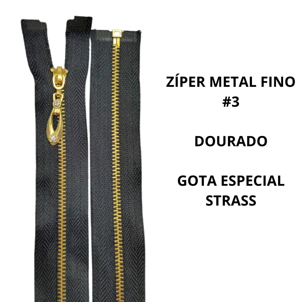 Zíper 60cm Metal #3 Dourado Para Jaleco 1 und Gota Strass Especial