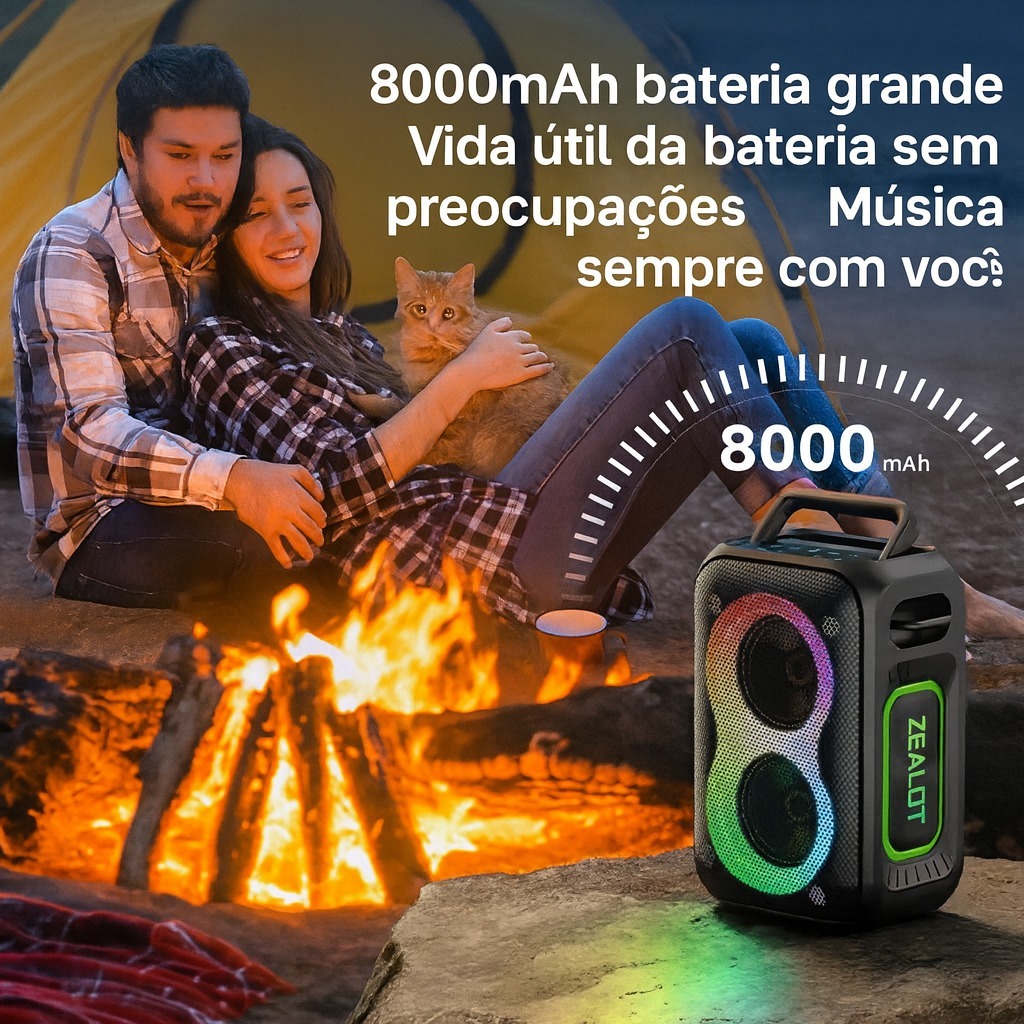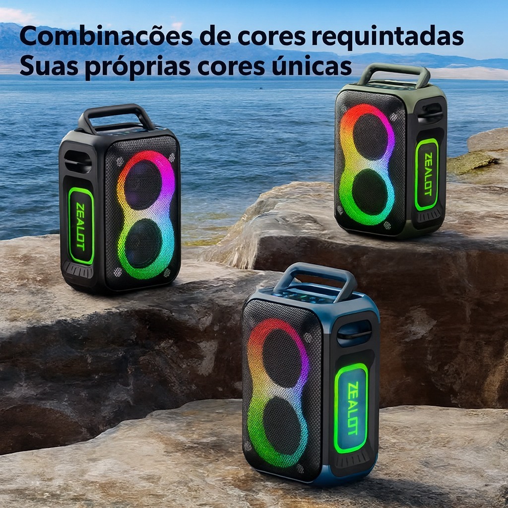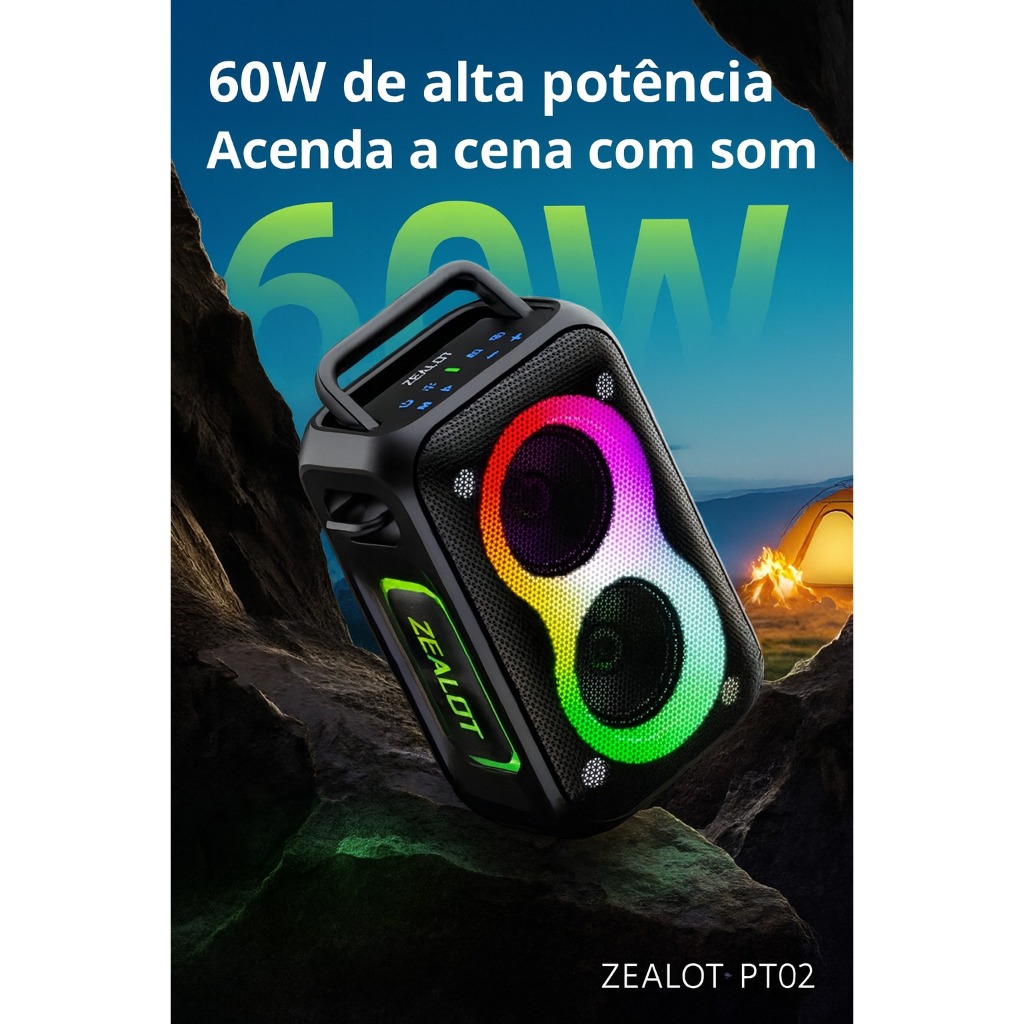 ZEALOT PT02 Caixa De Som Bluetooth 5.4 Portátil À Prova D'agua IPX6 60w Cor Preto