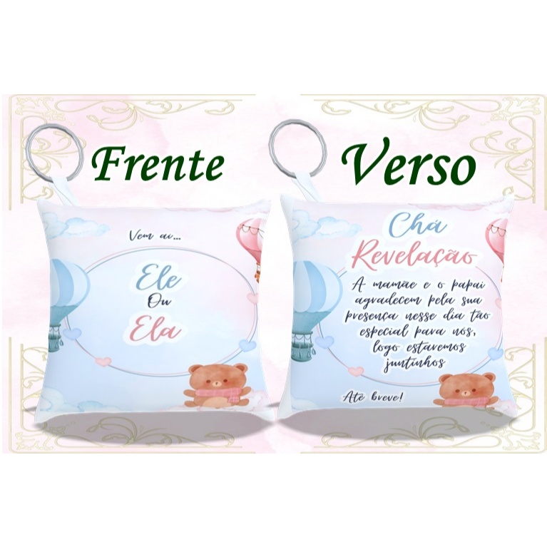 almochaveiro chá revelação arte frente e verso personalizado