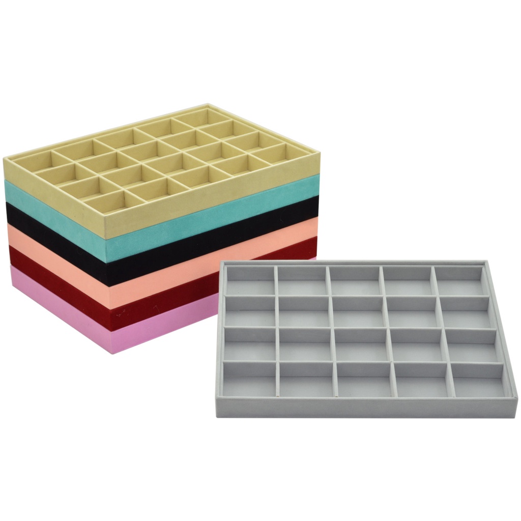 Bandeja Grande Organizador com 20 Quadriculados para Jóias Brinco E Bijuteria - Veludo