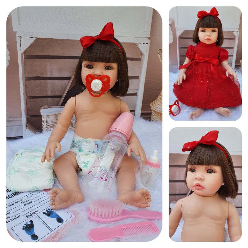 Boneca bebe Reborn completa corpo silicone Barata