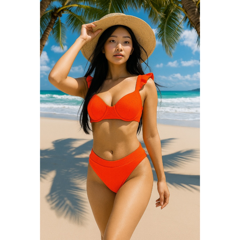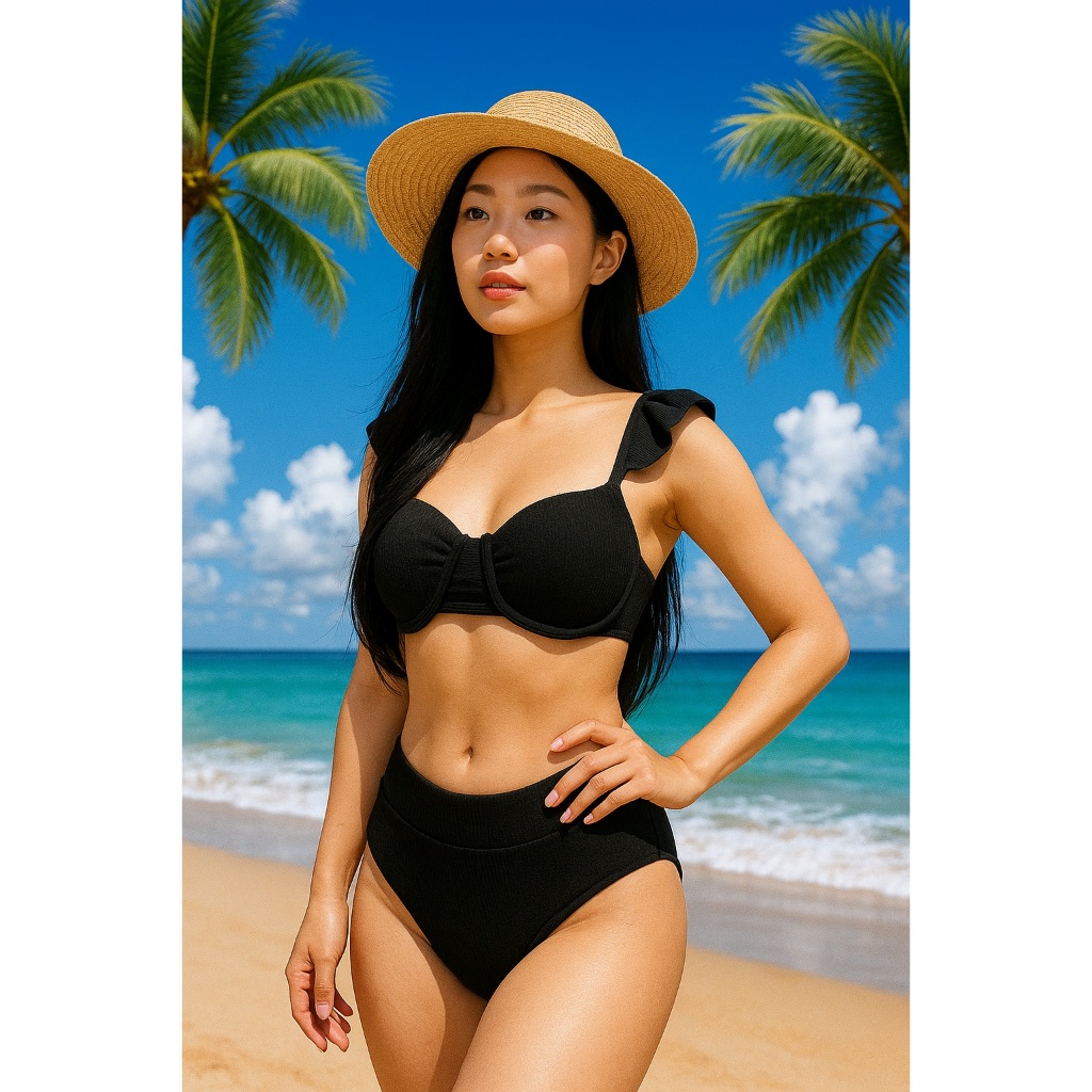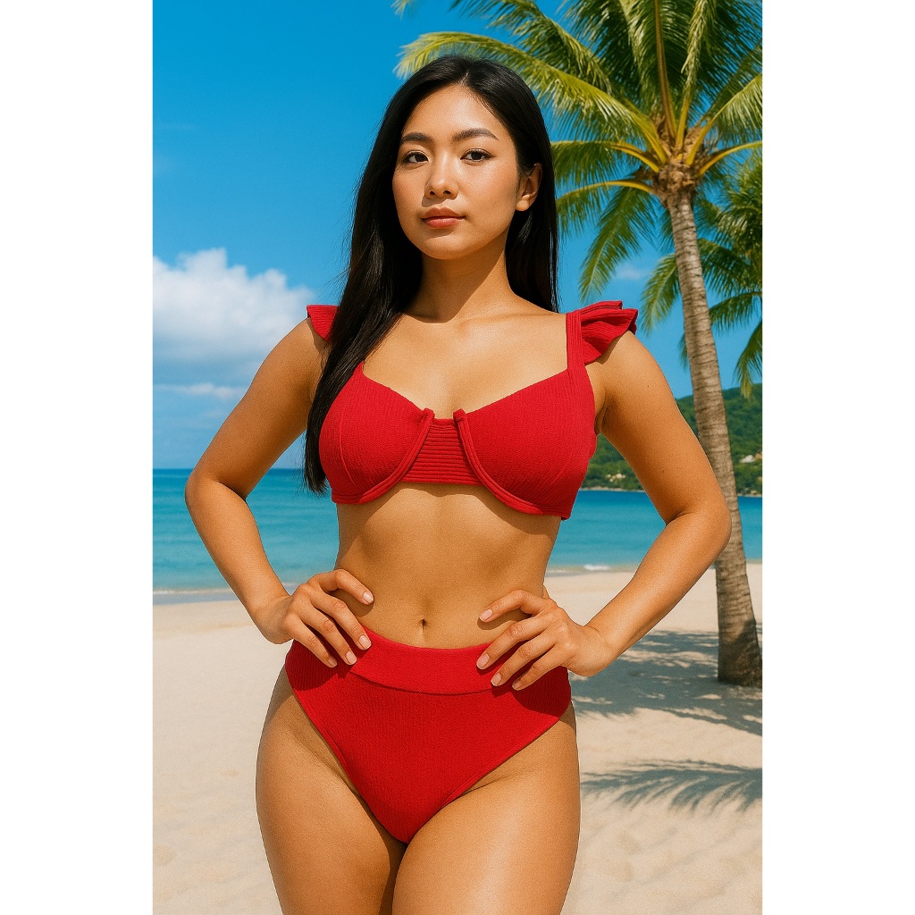 bikini feminino alça babado teçido anarruga possui bojo calcinha cintura alta forrado moda 2026