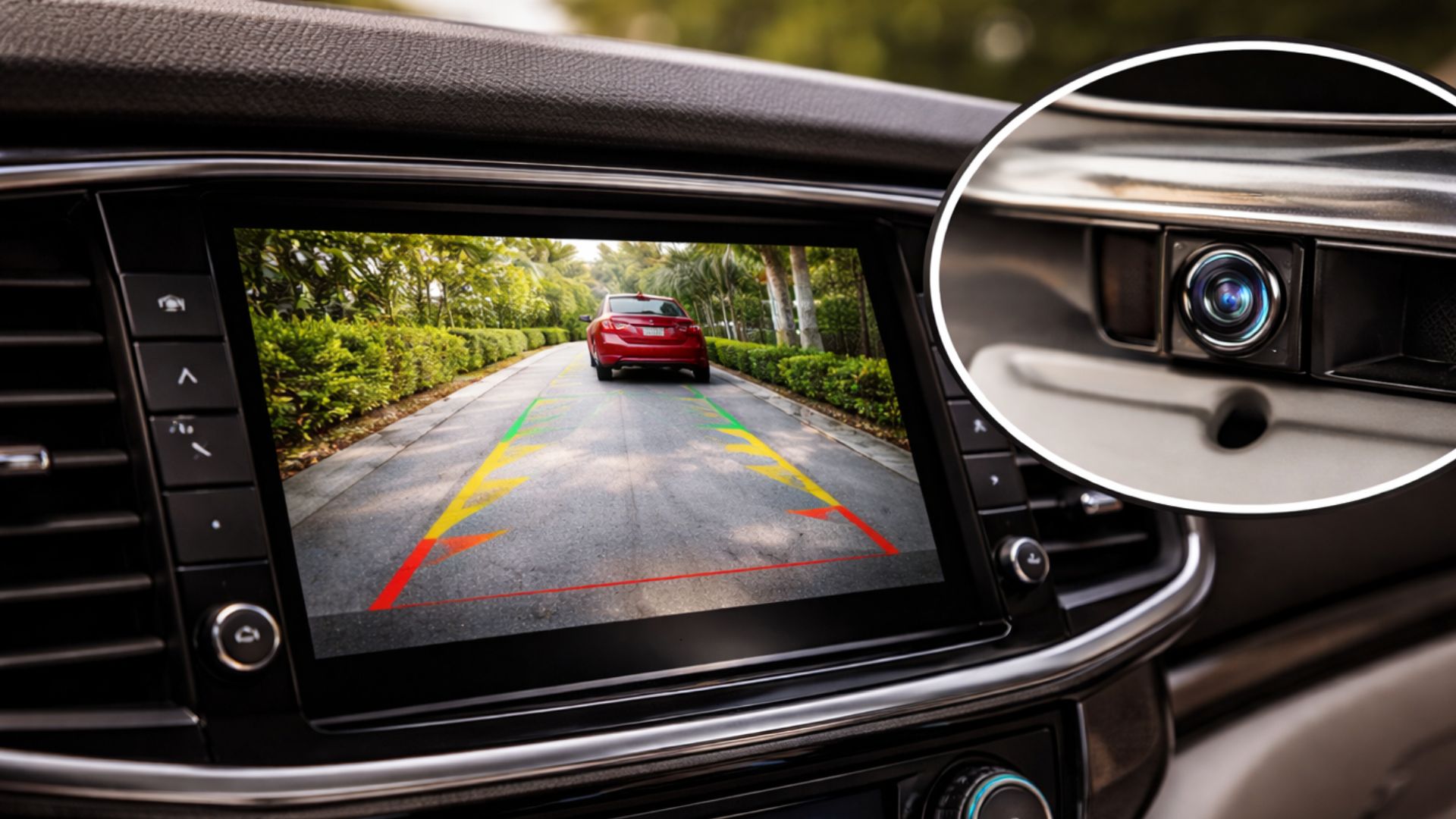 A câmera de ré é um pequeno equipamento que é instalado na parte de trás do carro. Quando você engata a marcha ré, ela liga automaticamente e mostra a imagem em uma tela, que pode ficar no painel, na central multimídia e até no retrovisor.