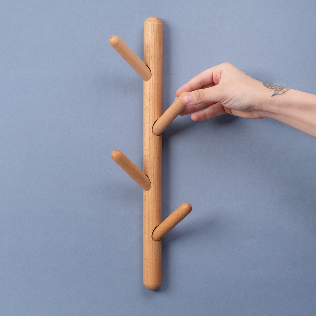 cabideiro de madeira para parede vertical 4 pinos - Oikos