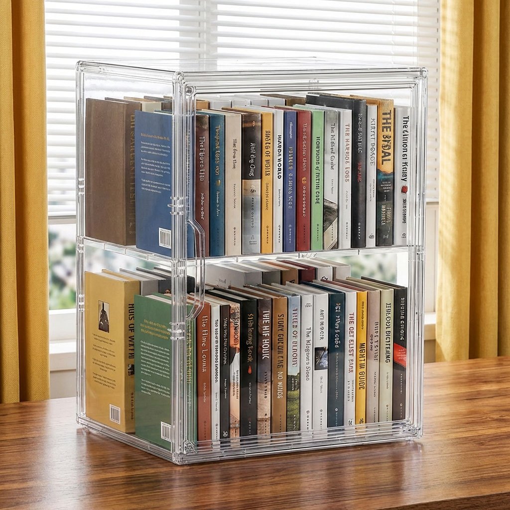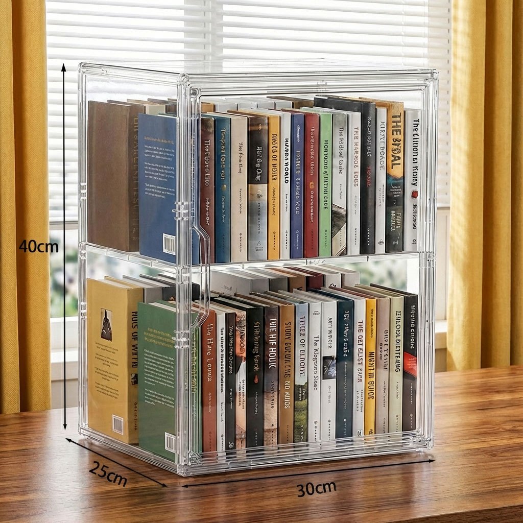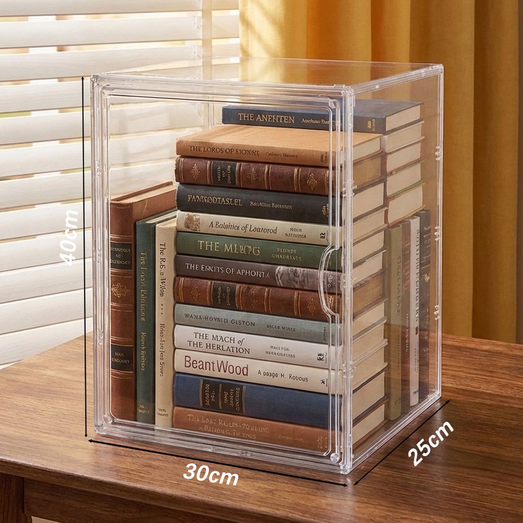 caixa acrilica organizadora de Livros Grande Transparente com Tampa Exibição para cadernos b5 Disco CD