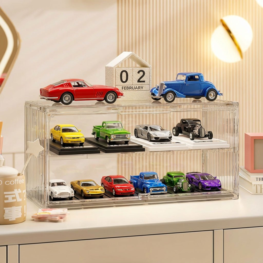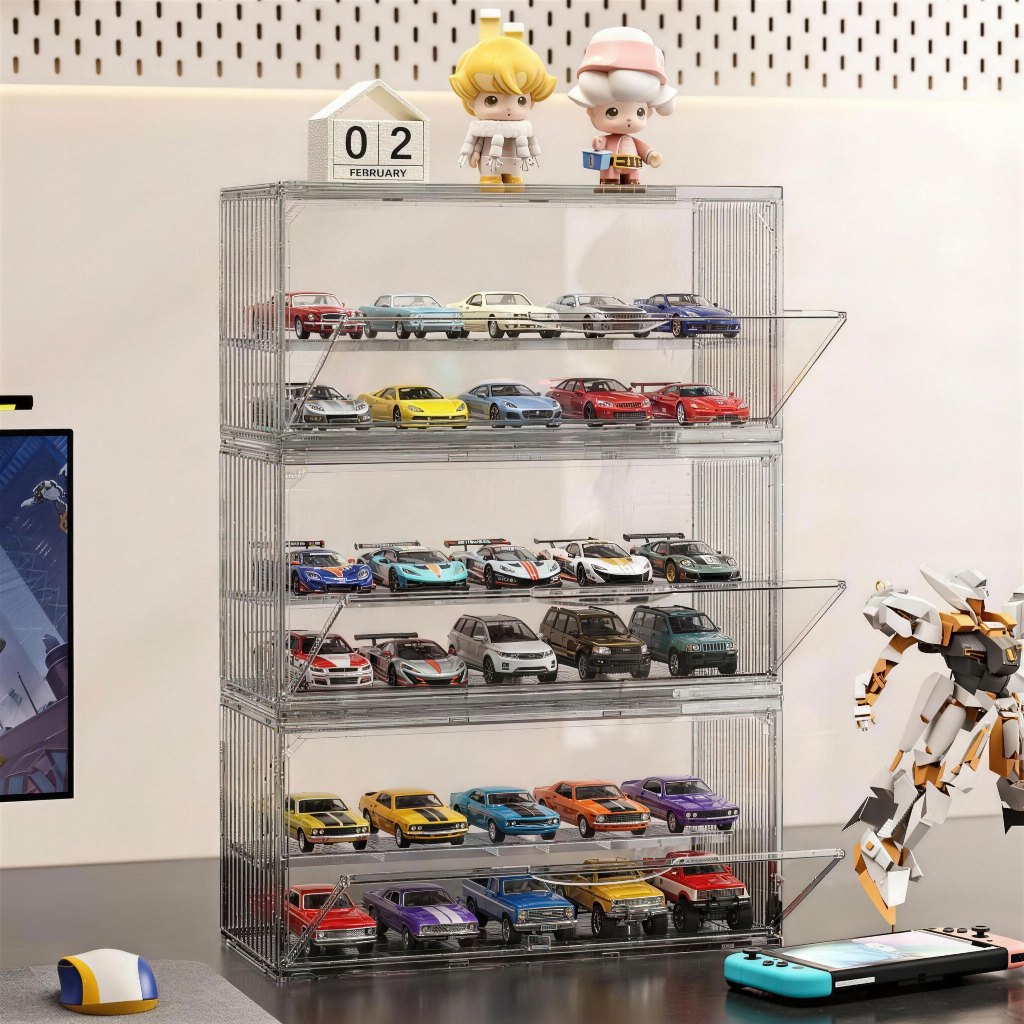 caixa expositor acrilico armazenamento miniaturas de carros Grande 2 camadas para 1:43 Bonecos Colecionáveis hot wheels