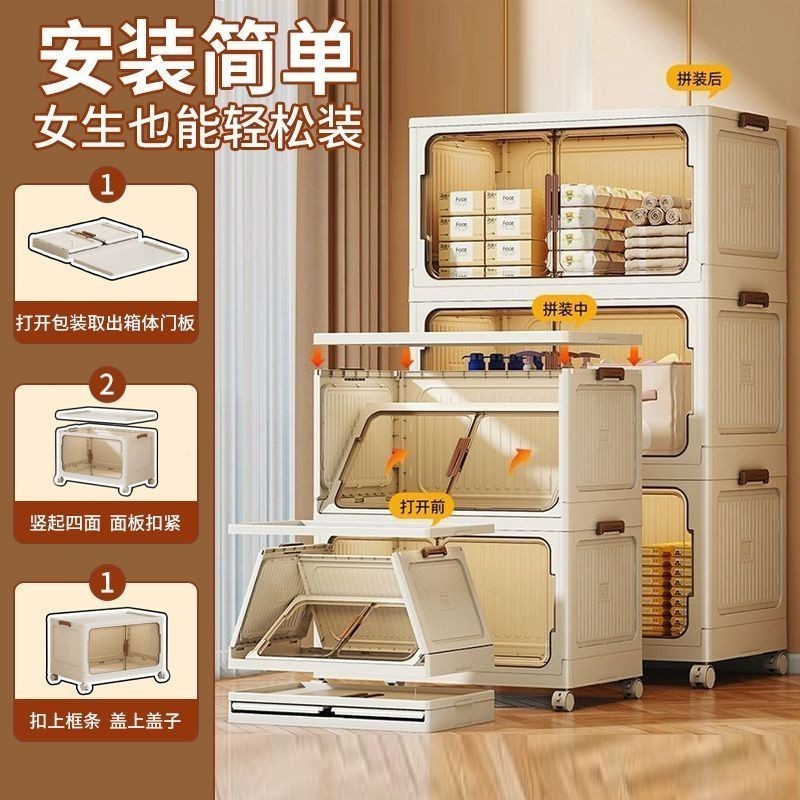 caixa organizadora armario armazenamento dobrável empilhavel com porta rodinhas multiuso 3 portas