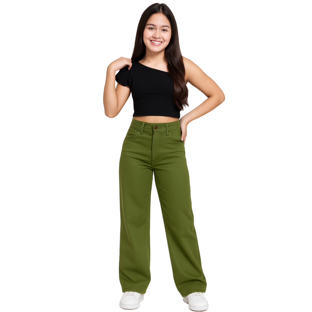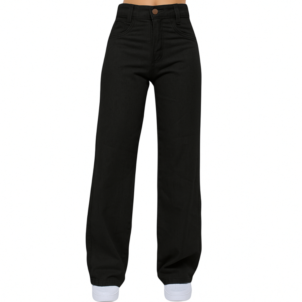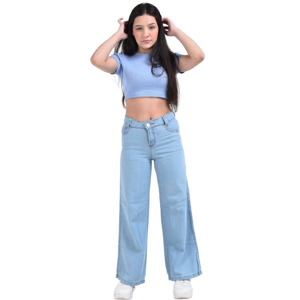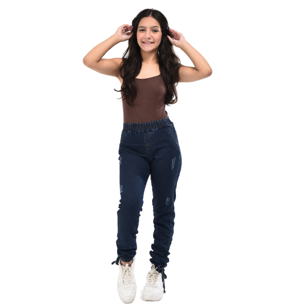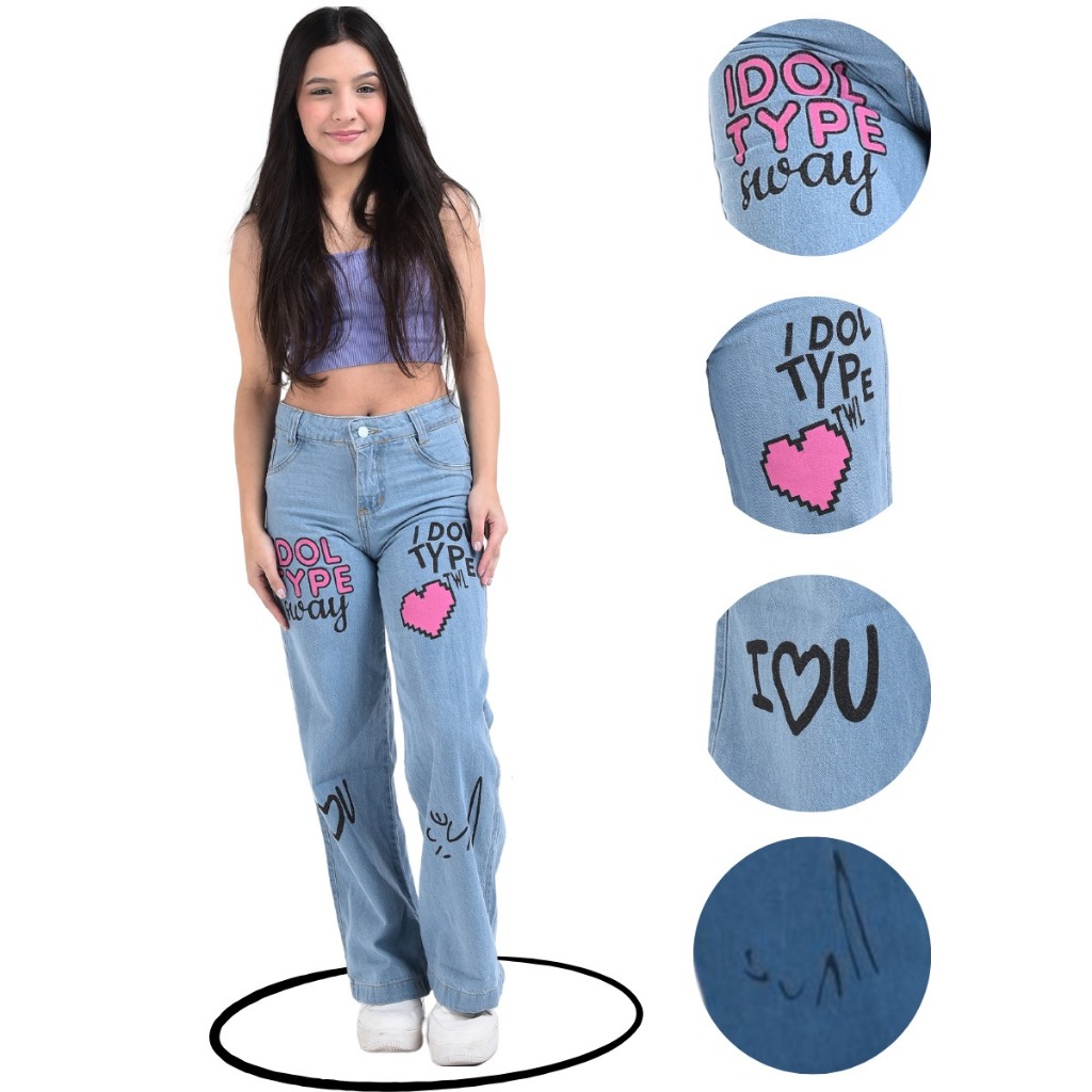 Calça jeans feminina wide leg infantil juvenil com escritas estampada