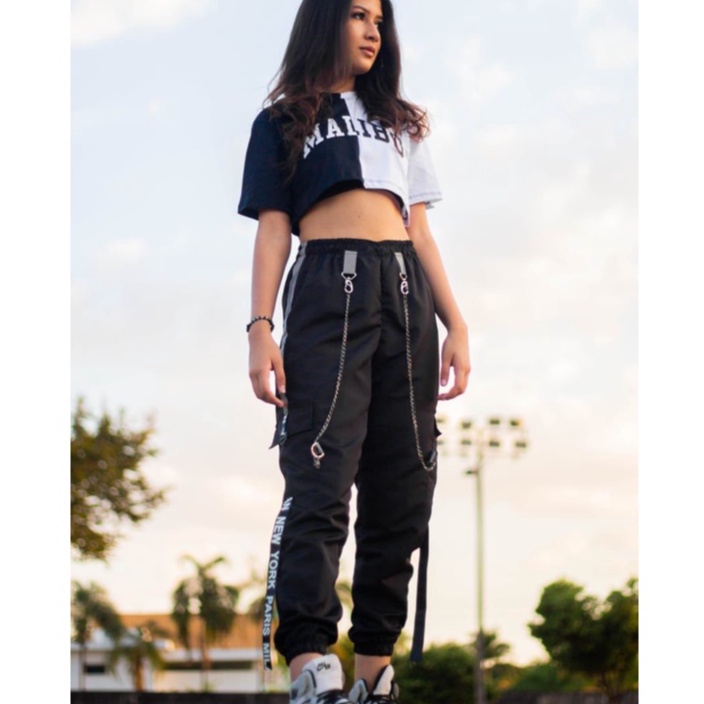Calça Jogger Cargo corrente Preta moda Gringa/ Unissex