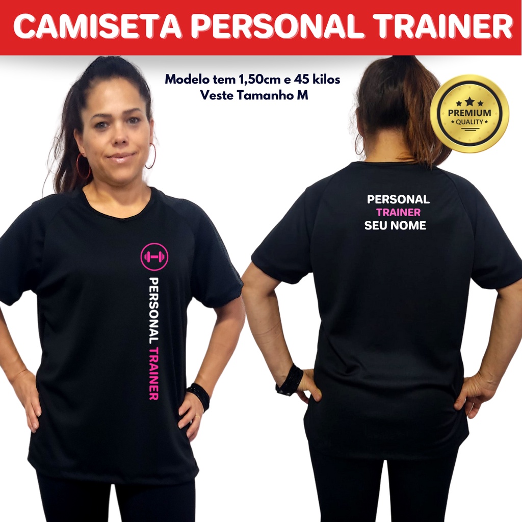 Camiseta Dry Fit Kit 2 p/ Personal Trainer - Tecido Esportivo - Nome Personalizado - Envio Rápido