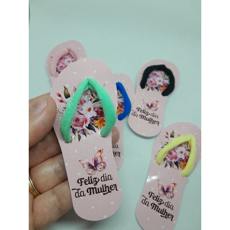 cartão tag chinelo papel lembrancinha dia da mulher elástico para cabelo personalizado acessório de cabelo