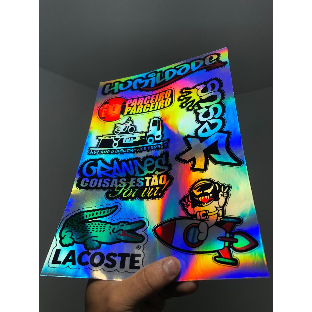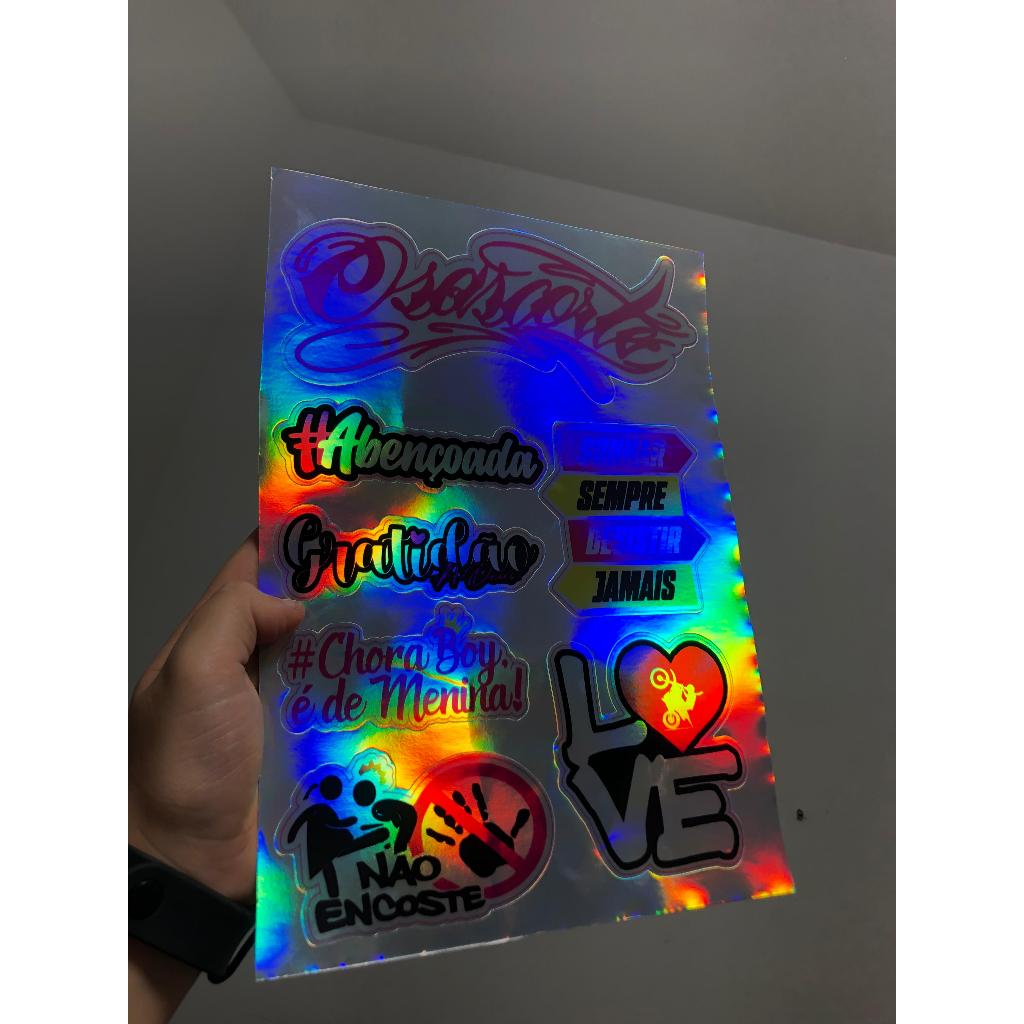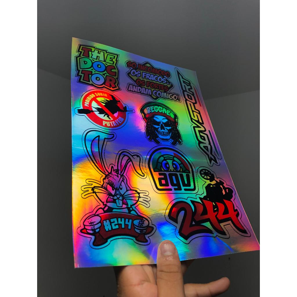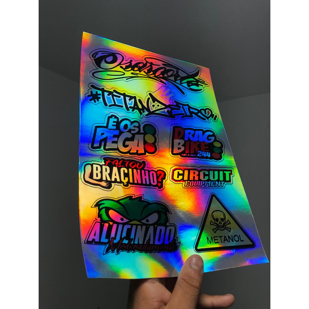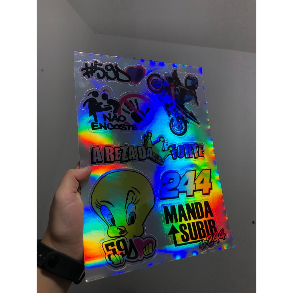 cartela de adesivos holgraficos para bicicleta moto bike, carro e caminhão