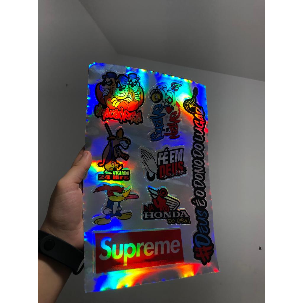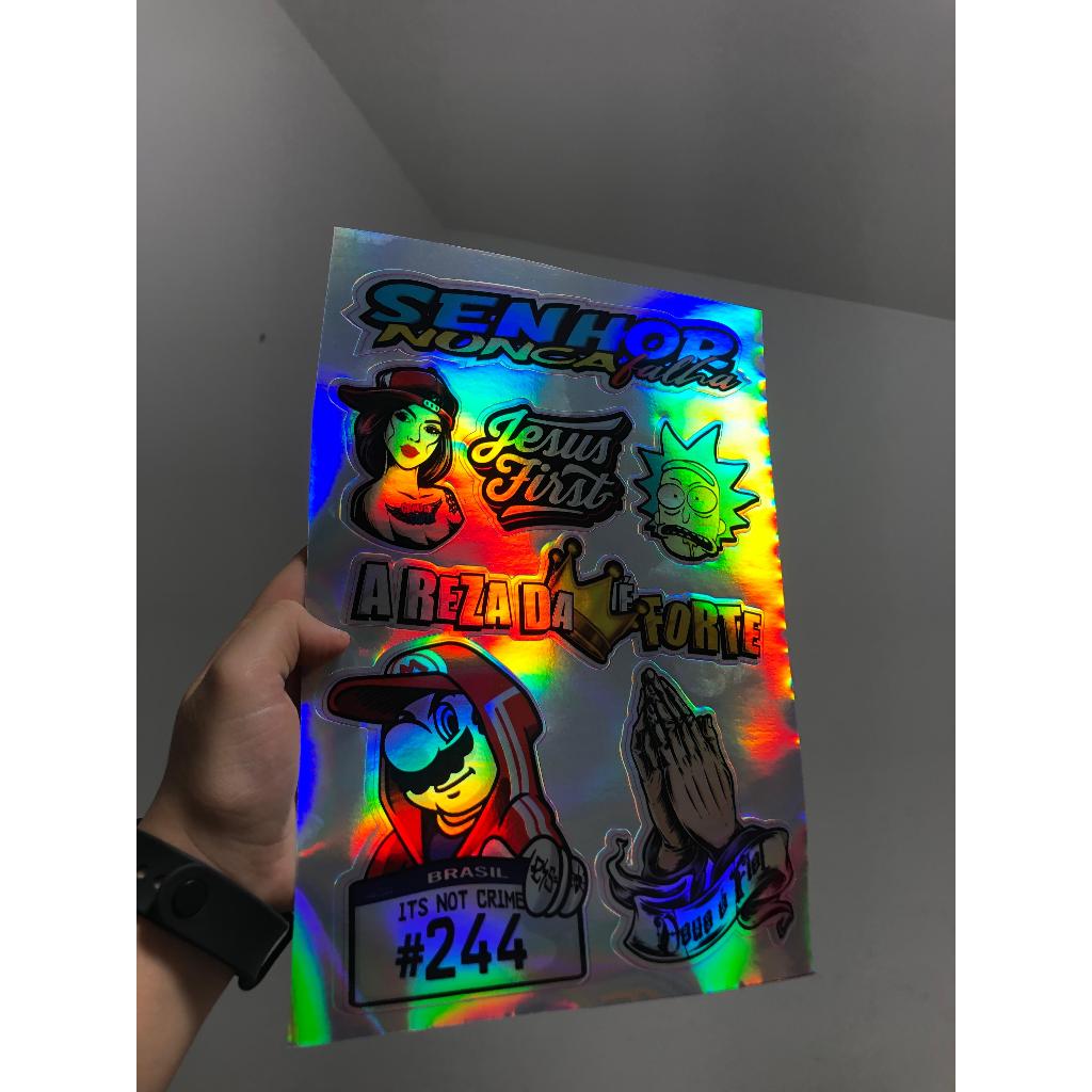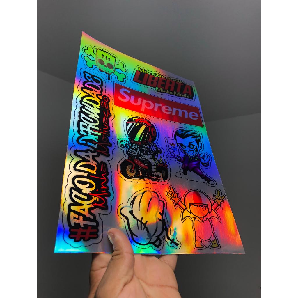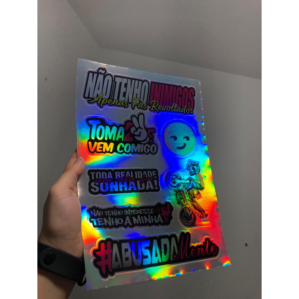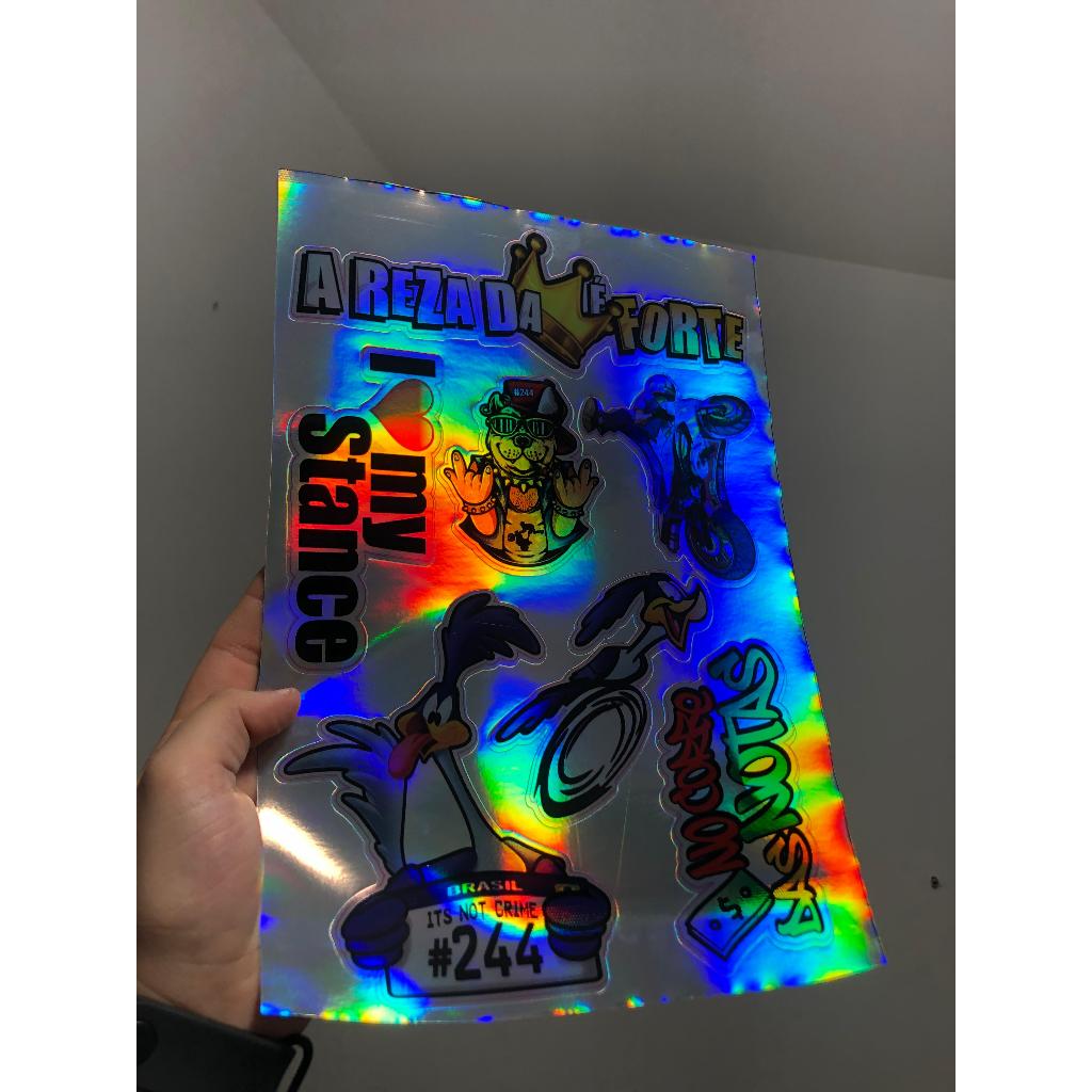 cartela de adesivos holgraficos para bicicleta moto bike, carro e caminhão