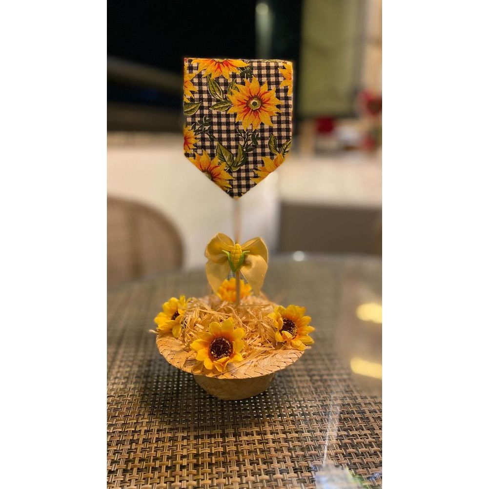 centro de mesa girassol com chapéu de palha- festa junina- quadrilha- São João - Arraiá