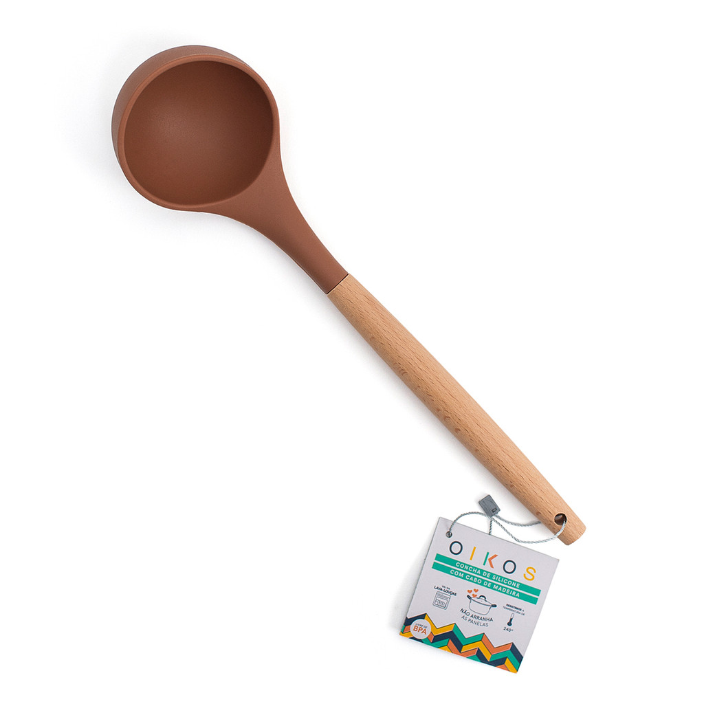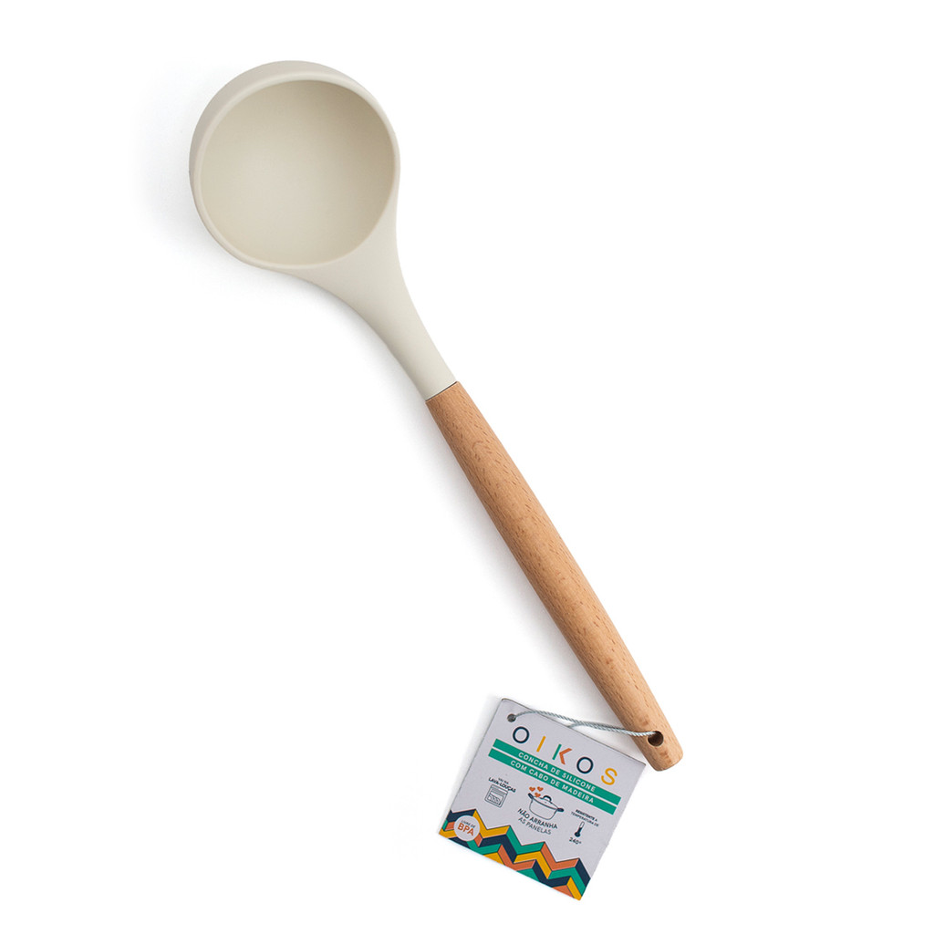 concha de silicone com cabo de madeira resistente para cozinha - oikos