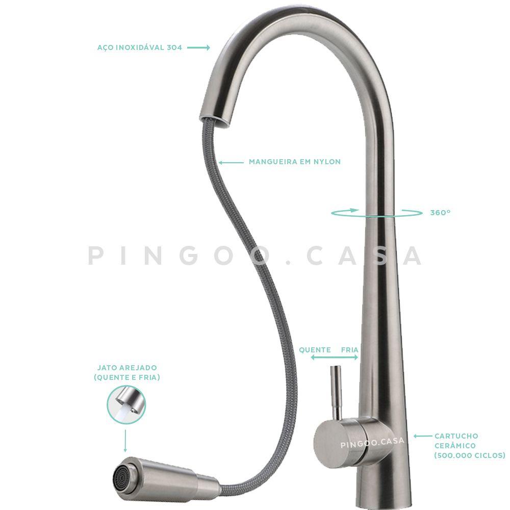 cuba para cozinha com acessórios carajás e Torneira para cozinha Gourmet em Aço escovado Apurema