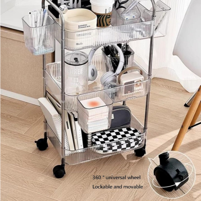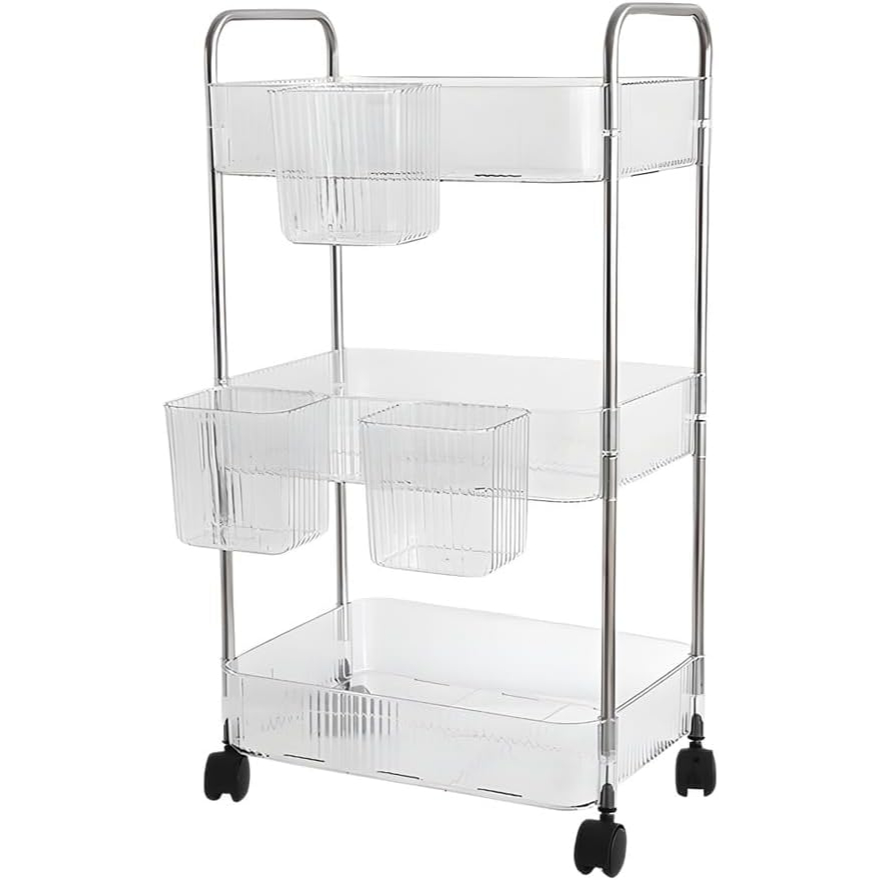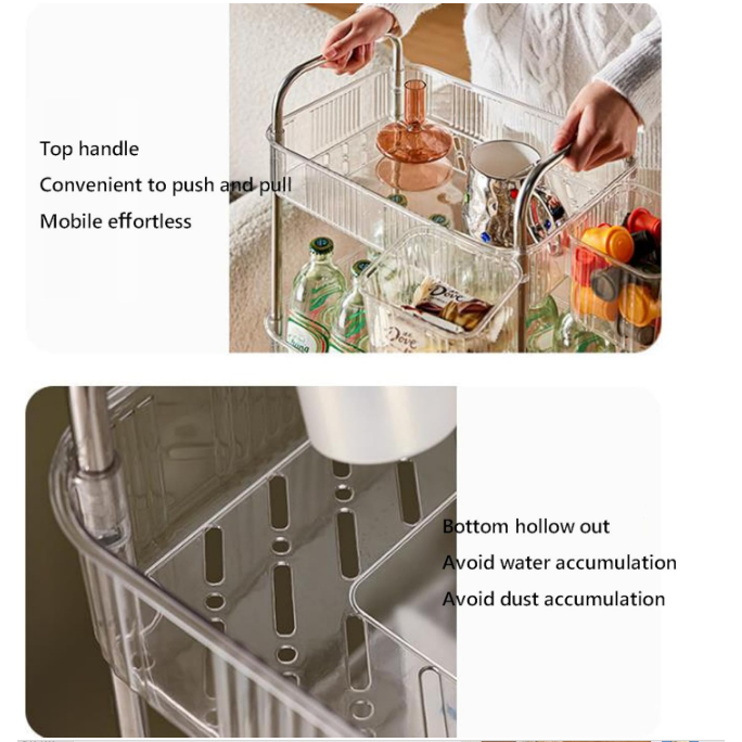 haosin Carrinho Organizador 360° Rotativo c/ Prateleiras Acrílico e Rodas-Conter Vários Itens