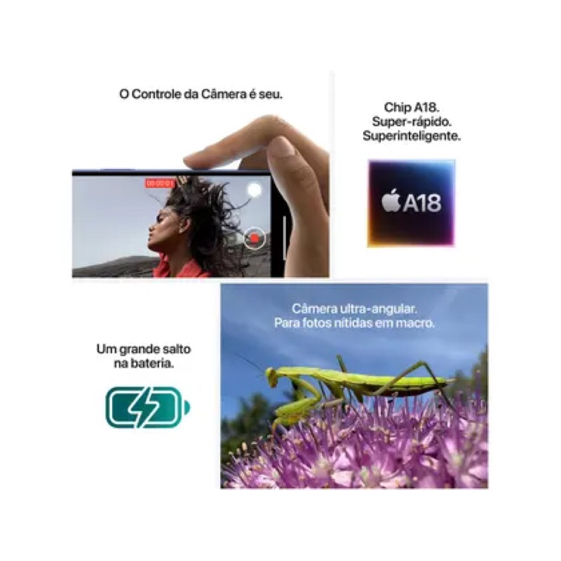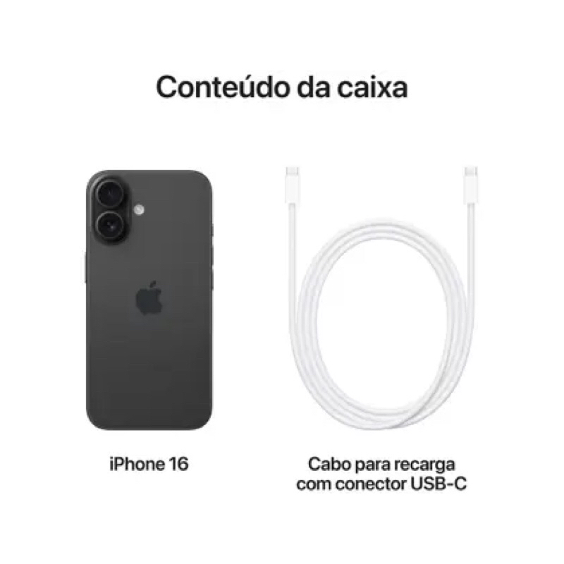iPhone 16 128GB Preto 6,1" 48MP iOS 5G lacrado com NF
