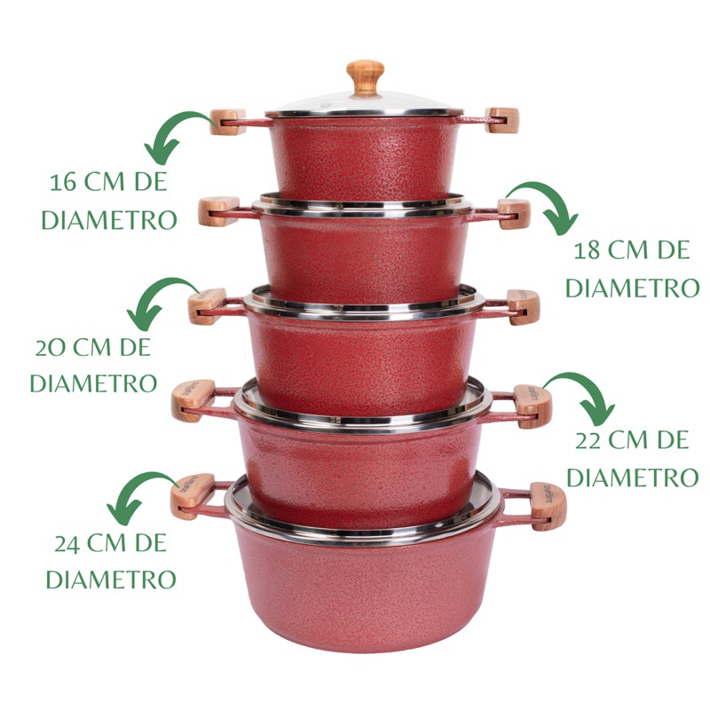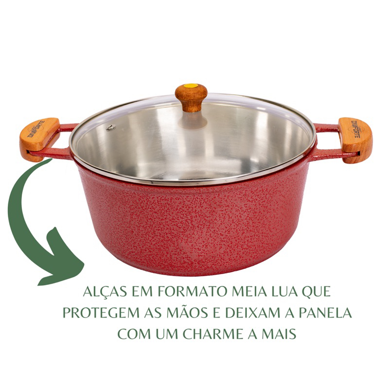 jogo de panela caçarola vermelha alumínio grosso fundido tampa de vidro 16 a 24