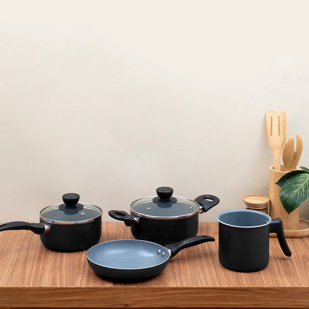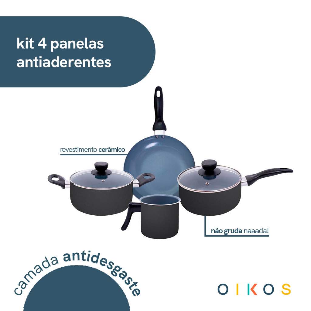 jogo de panelas 4 pçs antiaderentes de cerâmica e alumínio - oikos