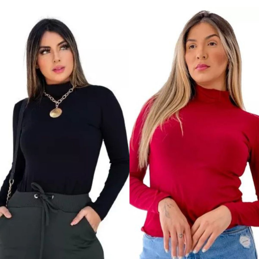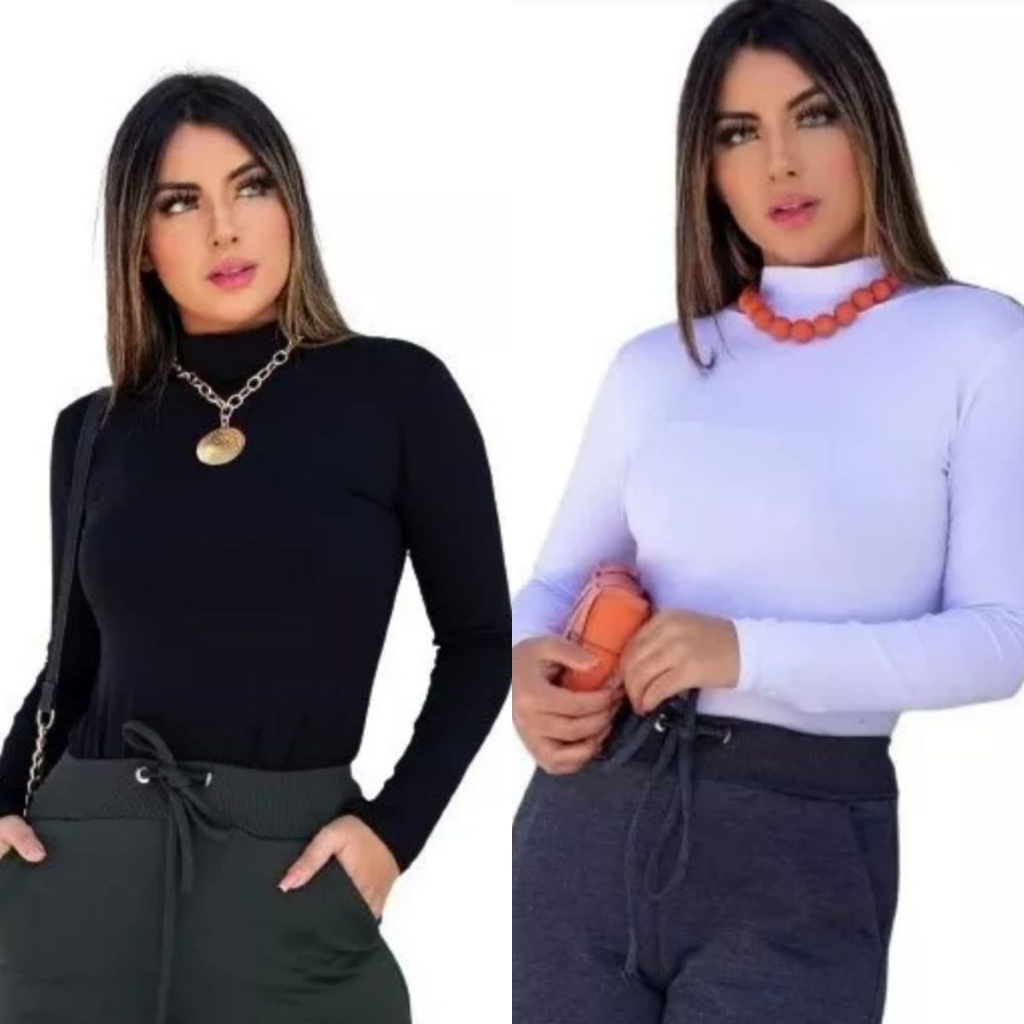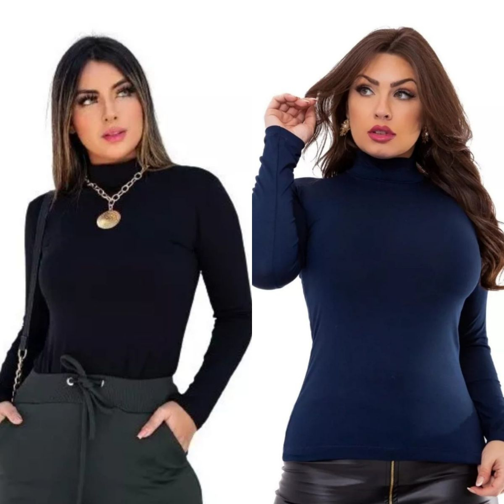 kIT 2 BLUSAS FEMININA MANGA LONGA CACHARREL GOLA ALTA SEGUNDA PELE VISCOLYCRA