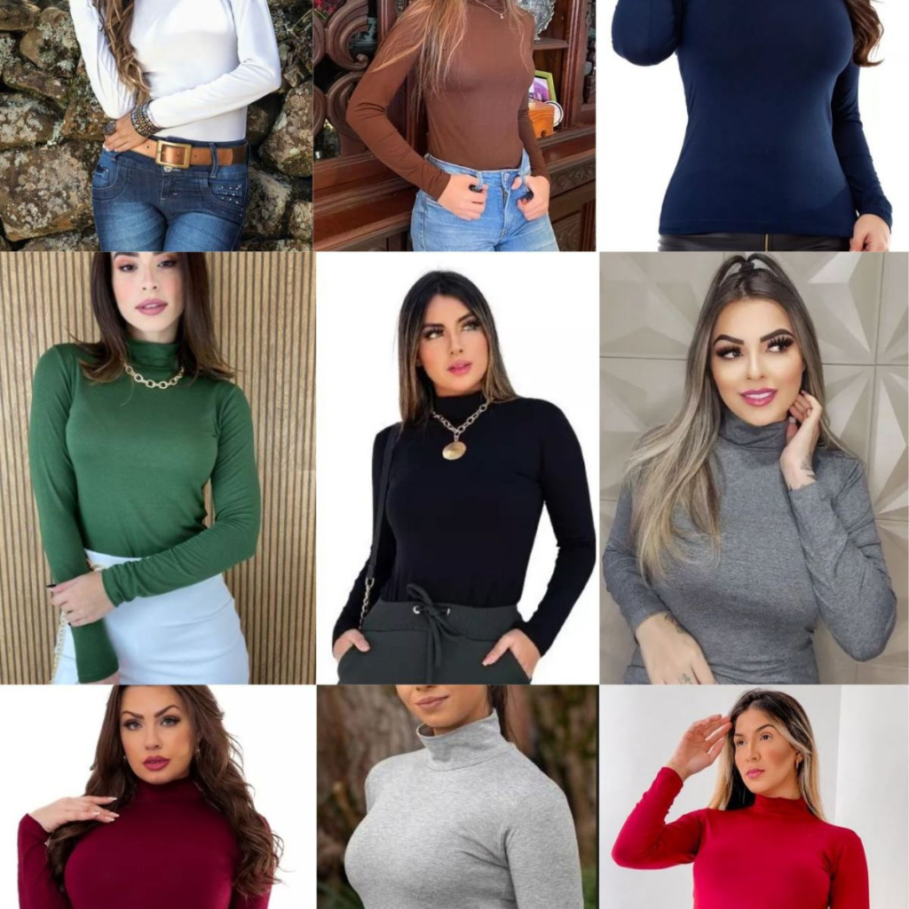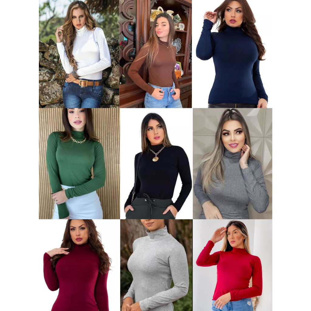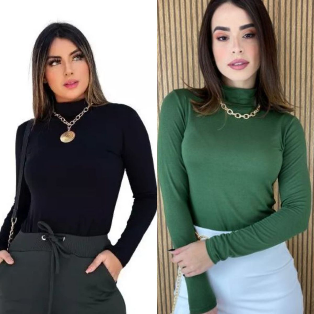 kIT 2 BLUSAS FEMININA MANGA LONGA CACHARREL GOLA ALTA SEGUNDA PELE VISCOLYCRA