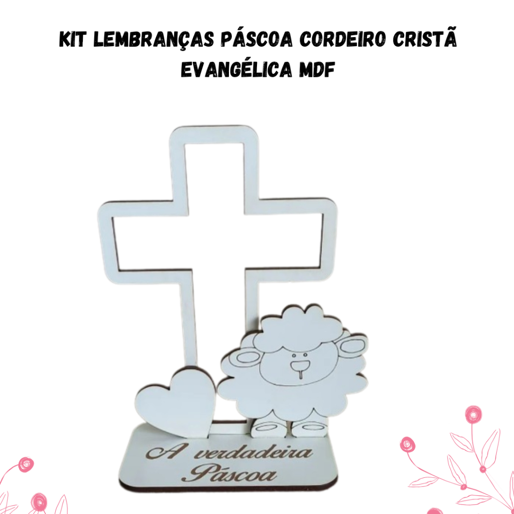 kIT Lembranças Páscoa Cordeiro Cristã Evangélica Mdf