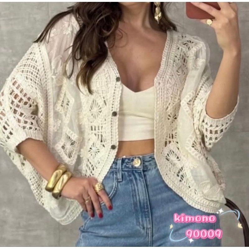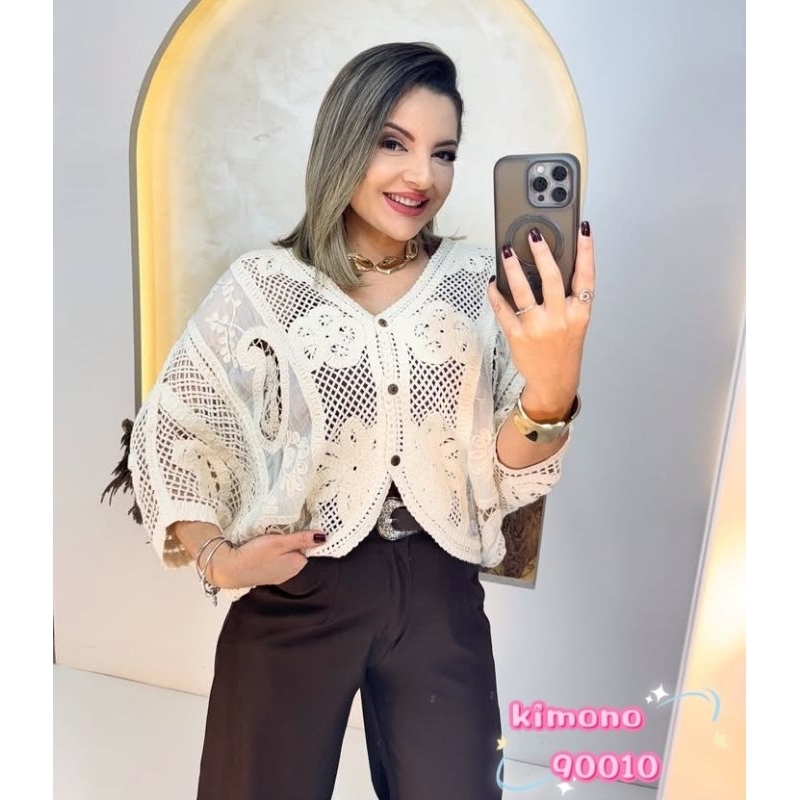 kimono em Crochê bem leve e macio refrescante casaul elegante para qualquer ocasicão