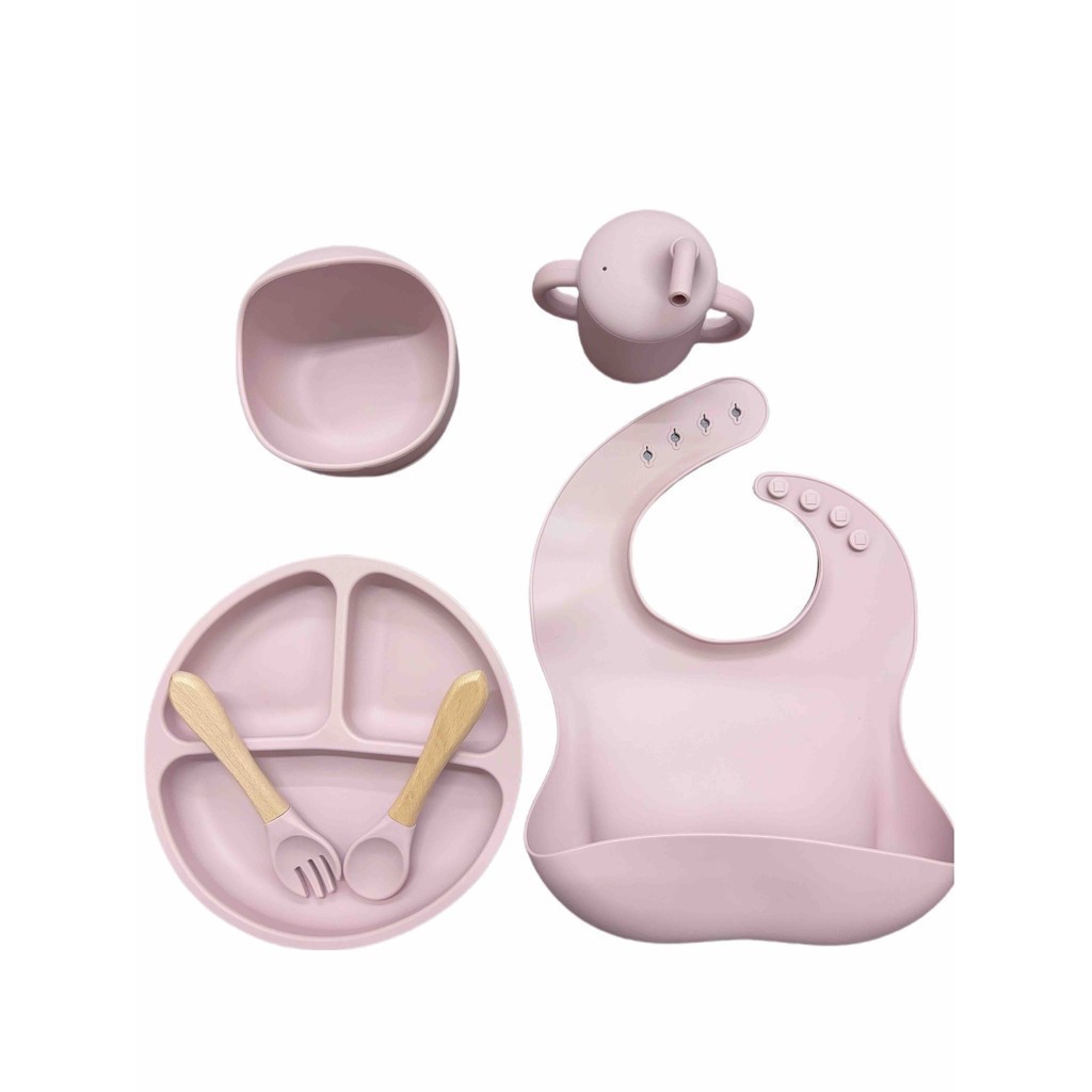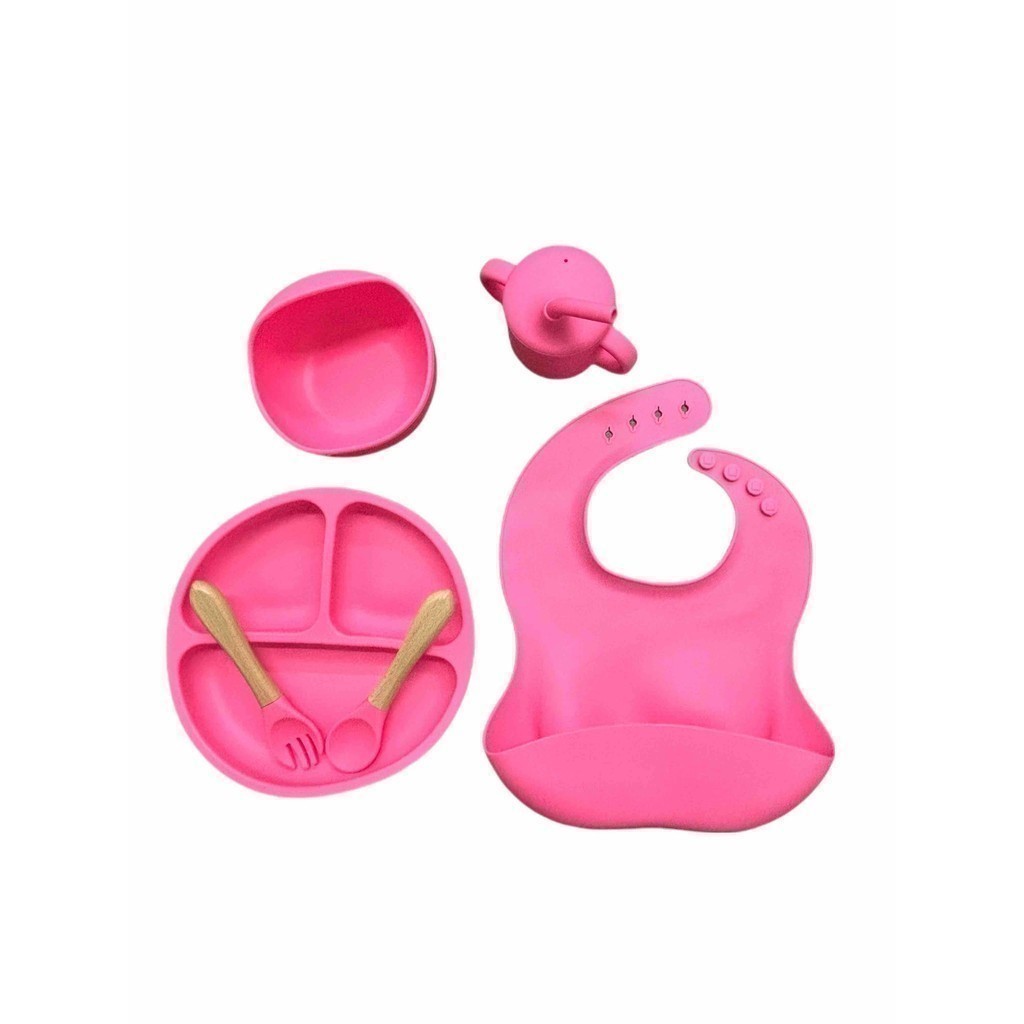 kit 06 peças de silicone talheres, prato, copo , tigela e babador