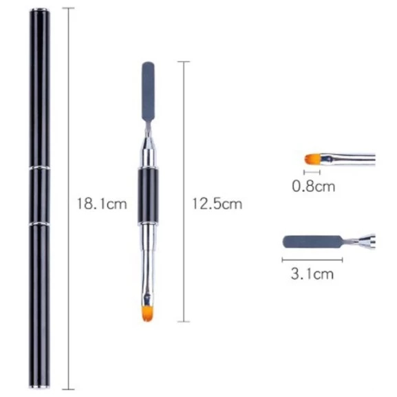 kit 1 Pincel Espátula Unhas Polygel Ponta Dupla Acrigel F1