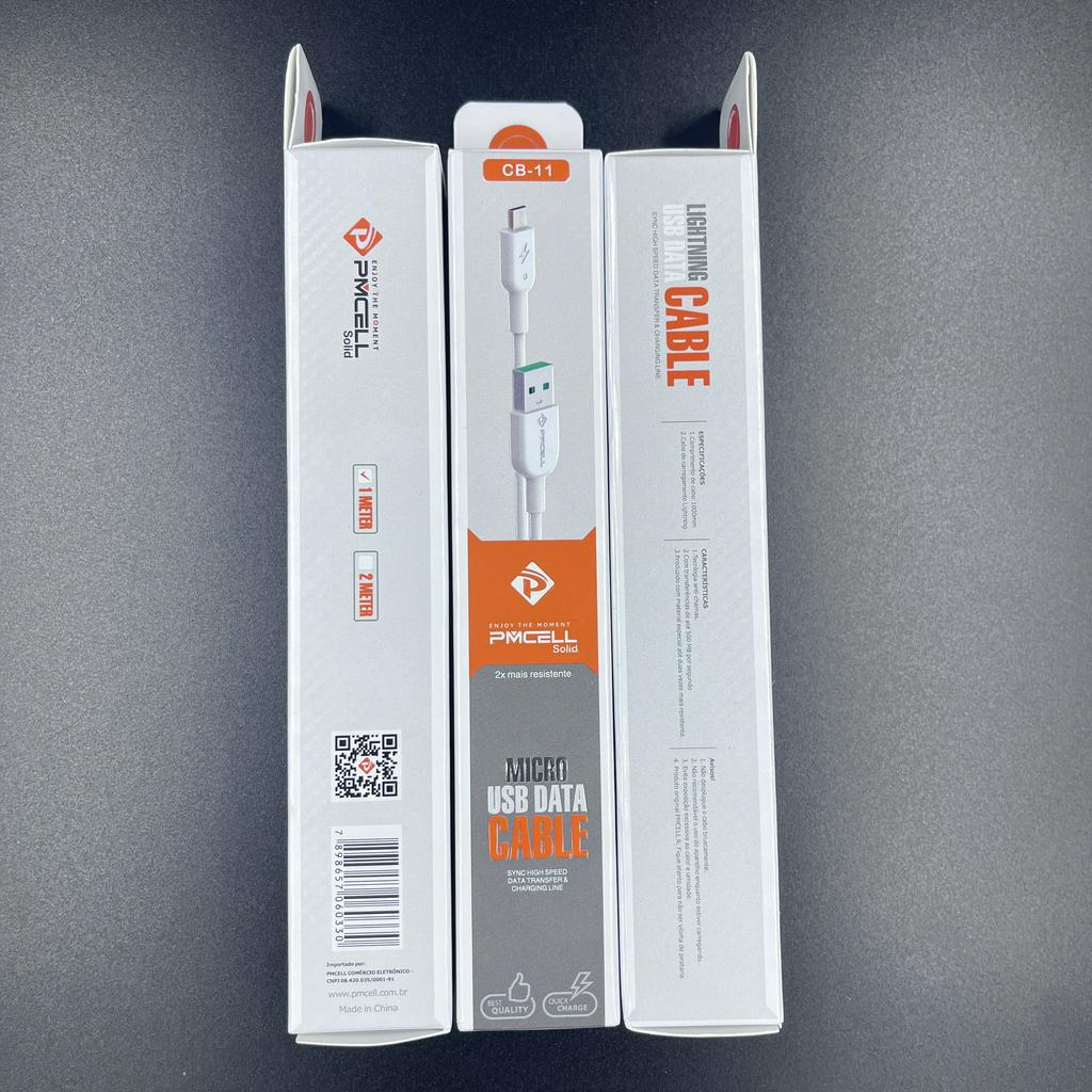 kit 10pcs Cabo V8 Micro Usb / Tipo C / iPhone Pmcell Resistente Cb-11 1 Metro Cor Branco